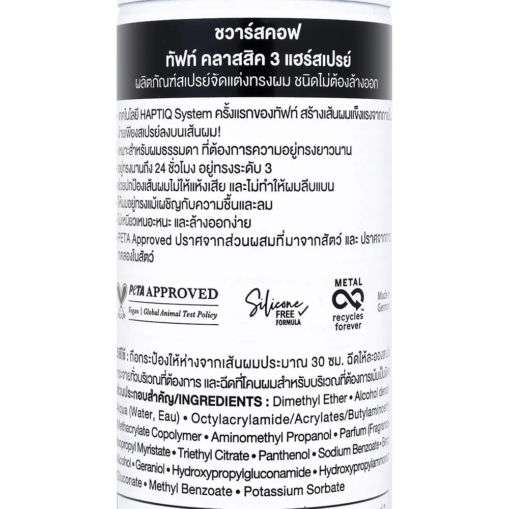 ชวาร์สคอฟ ทัพท์ คลาสสิค สเปรย์จัดแต่งทรงผม สูตรสำหรับผมธรรมดา ผมอยู่ทรงยาวนานระดับ 3 ให้ความสดชื่น ป้องกันปัญหาผมลีบแบนได้นานถึง 24 ชม.<br />