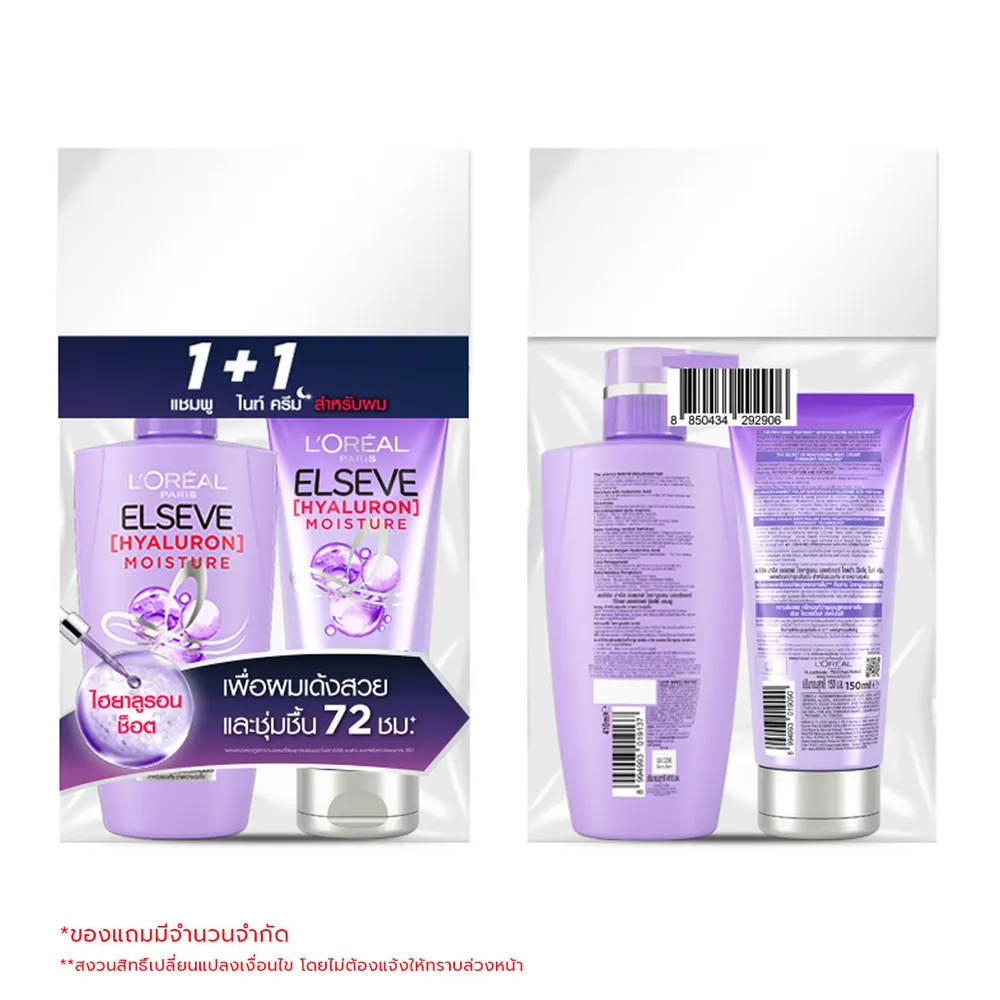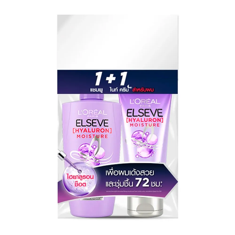 ลอรีอัล ปารีส เอลแซฟ ไฮยาลูรอน มอยซ์เจอร์ 72เอช มอยซ์เจอร์ ฟิลลิ่ง แชมพู 410 มล. และไนท์ครีม สำหรับผม 150 มล.