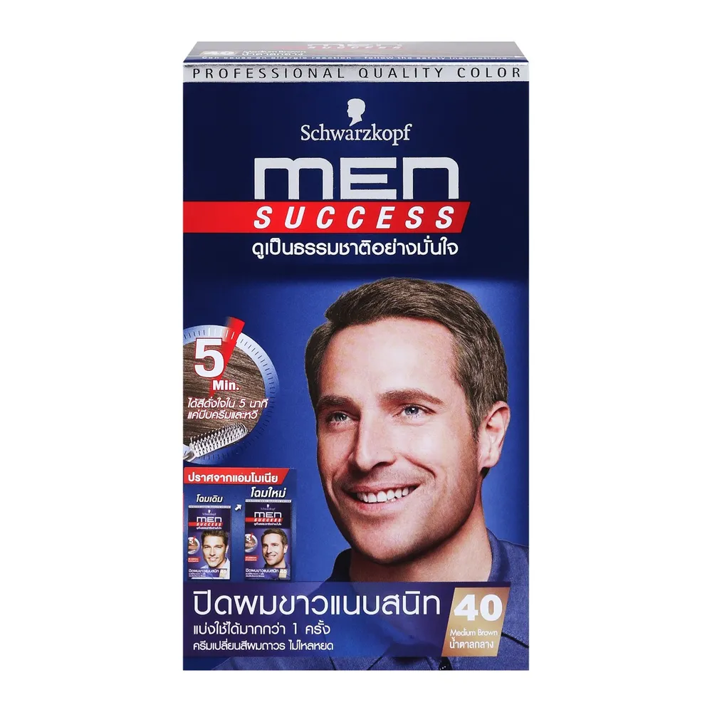 ปิดผมขาวแนบสนิทด้วย ชวาร์สคอฟ เม็น ซัคเซส ครีมย้อมผมสำหรับผู้ชาย ครีมเปลี่ยนสีผมถาวรคุณภาพสูง สูตรเพื่อหนุ่มเอเชียโดยเฉพาะ ให้สีผมสวย ดูเป็นธรรมชาติได้อย่างมั่นใจ<br />