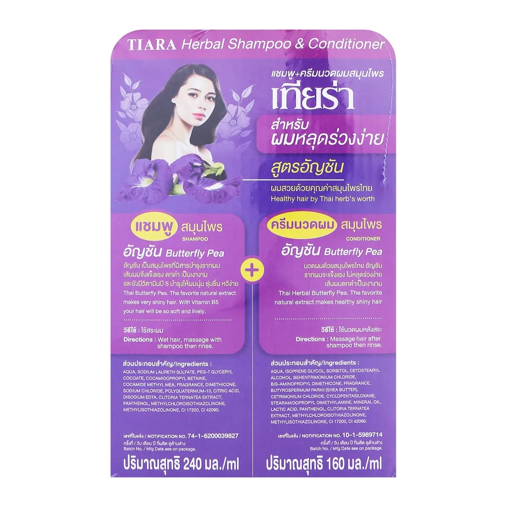 - เทียร่า แชมพูสมุนไพรอัญชัน + ครีมนวดผมสมุนไพรอัญชัน<br />