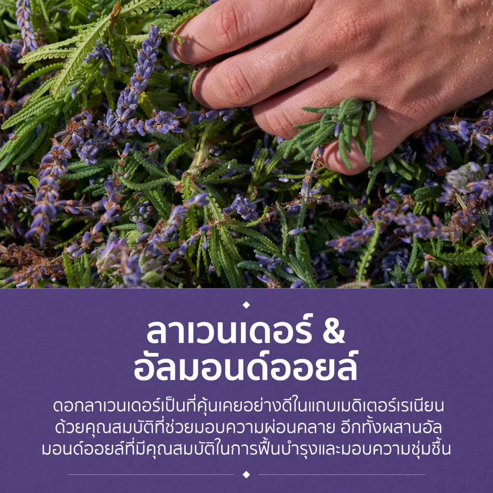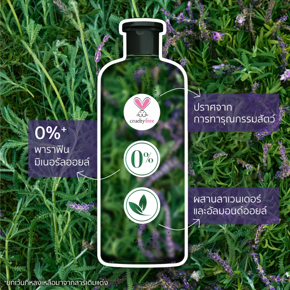 - ใช้คู่กับแชมพู เฮอร์บัล เอสเซนส์ สูตรผสานลาเวนเดอร์ และอัลมอนด์ออยล์ เพื่อผลลัพธ์ที่ดีกว่า<br />