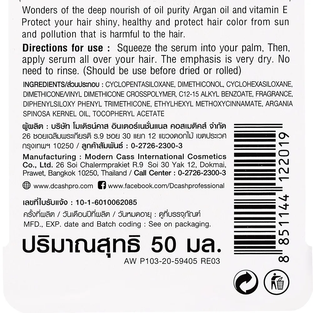 - บำรุงผมจากน้ำมันบริสุทธิ์ อาร์แกน ออยล์ และวิตามินอี<br />