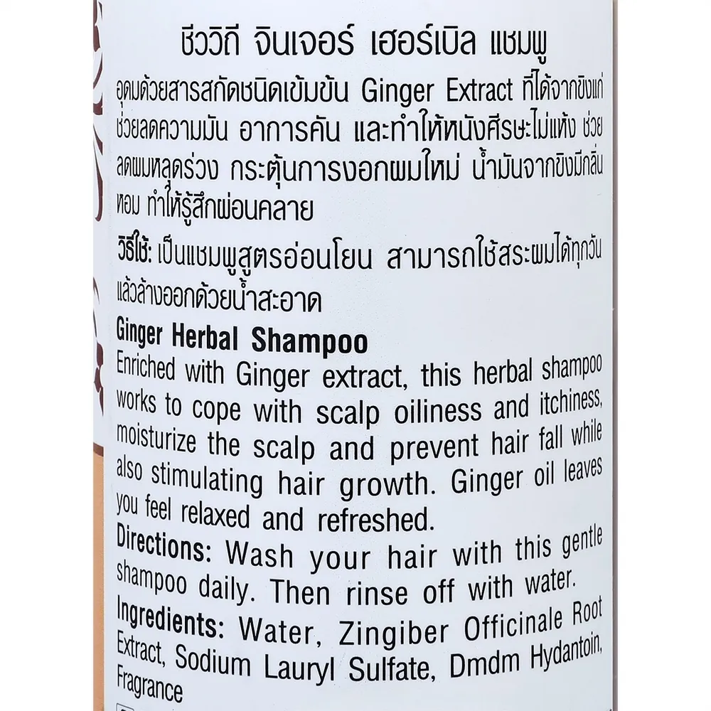 ชีววิถี จินเจอร์ เฮอร์เบิล แชมพู ที่อุดมไปด้วยสารสกัดขิงแก่ชนิดเข้มข้น พร้อมช่วยทำความสะอาดเส้นผมและหนังศีรษะอย่างอ่อนโยน เผยกลิ่นหอมสะอาดสดชื่นรู้สึกผ่อนคลายในทุกครั้งหลังสระ<br />