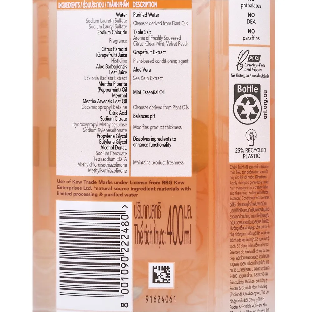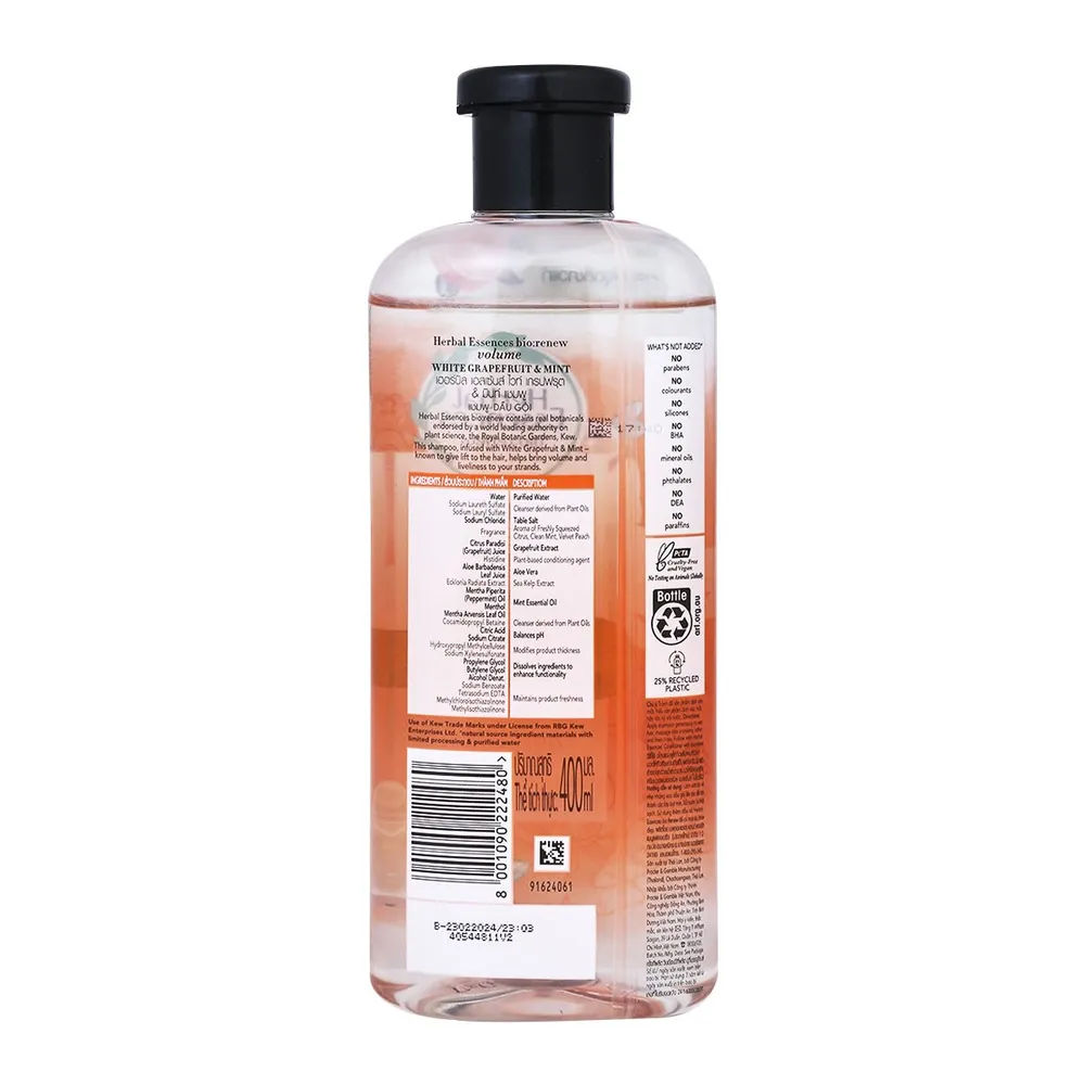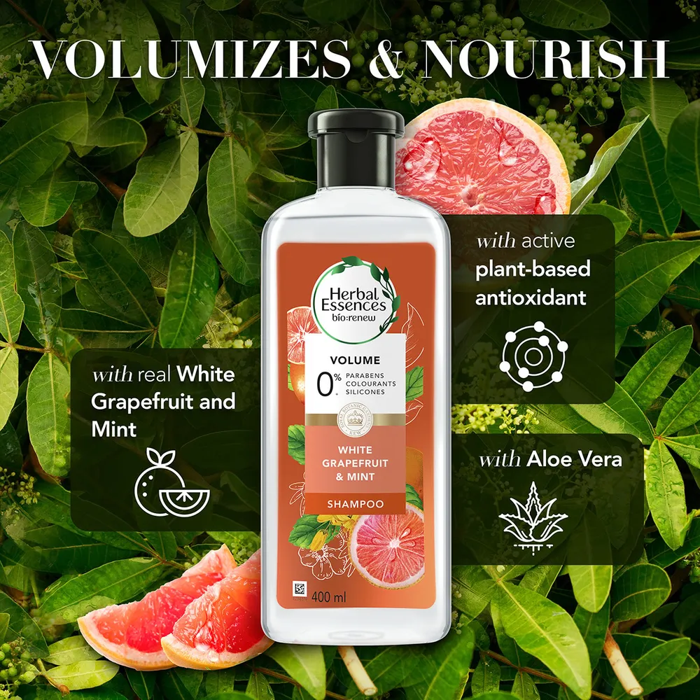 เฮอร์บัล เอสเซนส์ แชมพู สูตรวอลุ่ม ไวท์เกรปฟรุตแอนด์โมซ่ามิ้นท์ 400 มล.