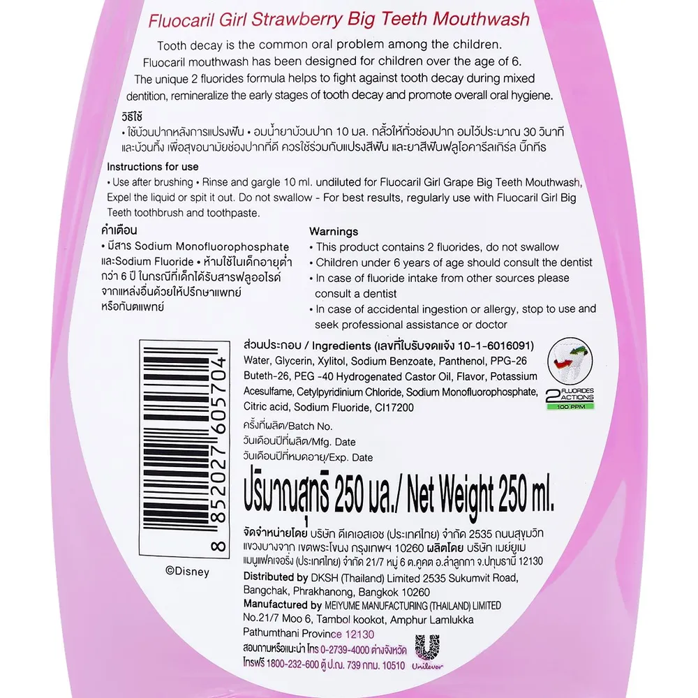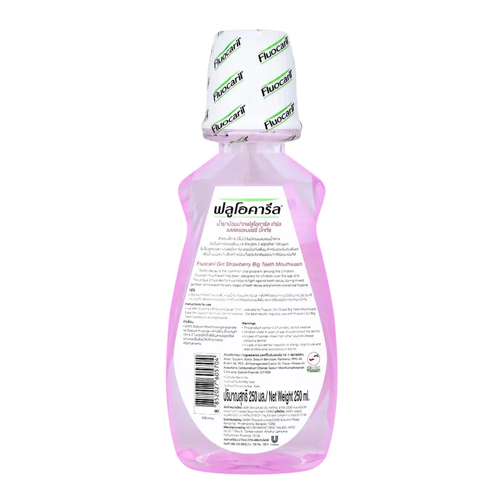ฟลูโอคารีล เกิร์ล มิ้ลค์ทีธ น้ำยาบ้วนปากสำหรับเด็ก รสสตรอว์เบอร์รี่ 250 มล.