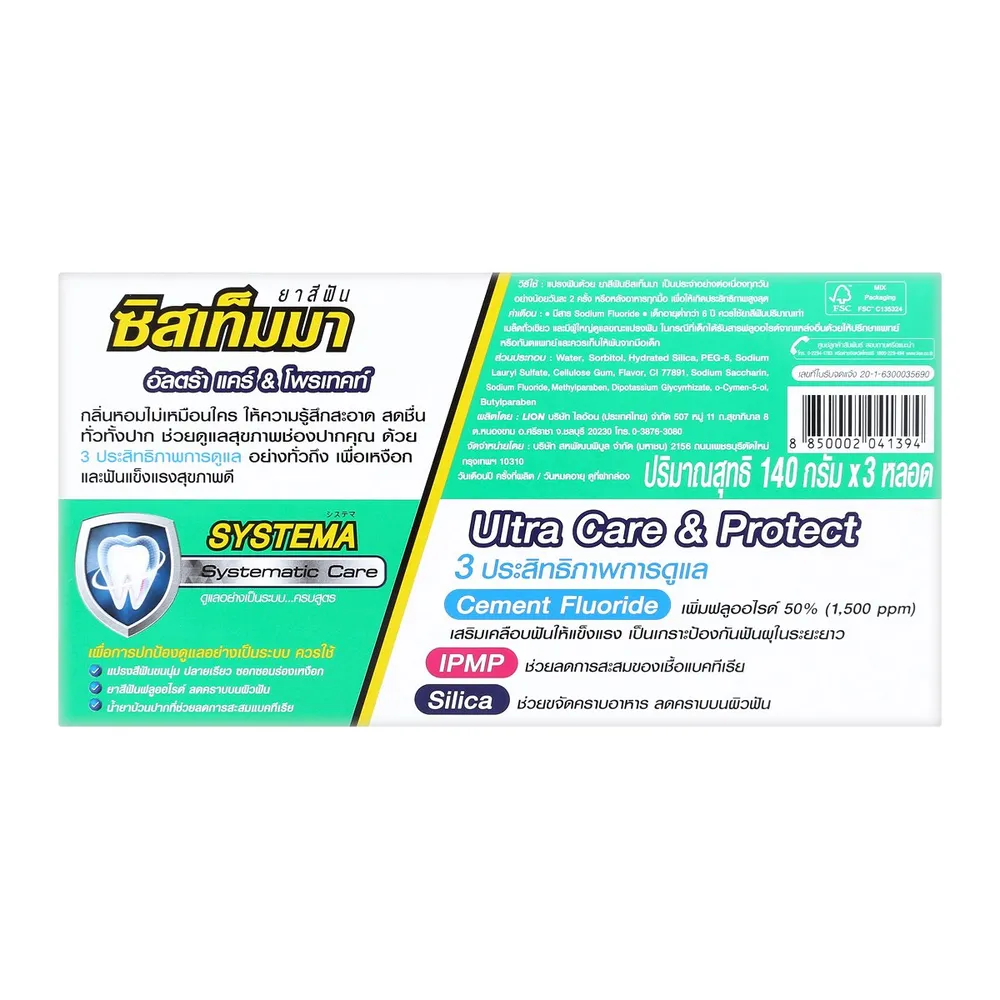 ซิสเท็มมา ยาสีฟัน อัลตร้า แคร์ แอนด์ โพรเทคท์ สปริง มิ้นต์ 140 ก. แพ็ค 3