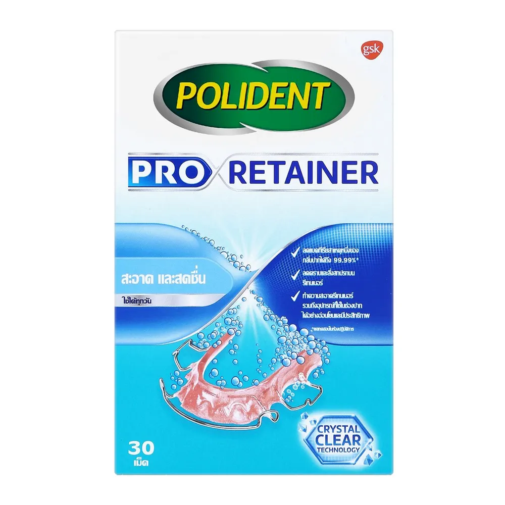 <p>โพลิเดนท์ โปร รีเทนเนอร์ เม็ดฟู่ทำความสะอาดรีเทนเนอร์ 30 เม็ด<br />