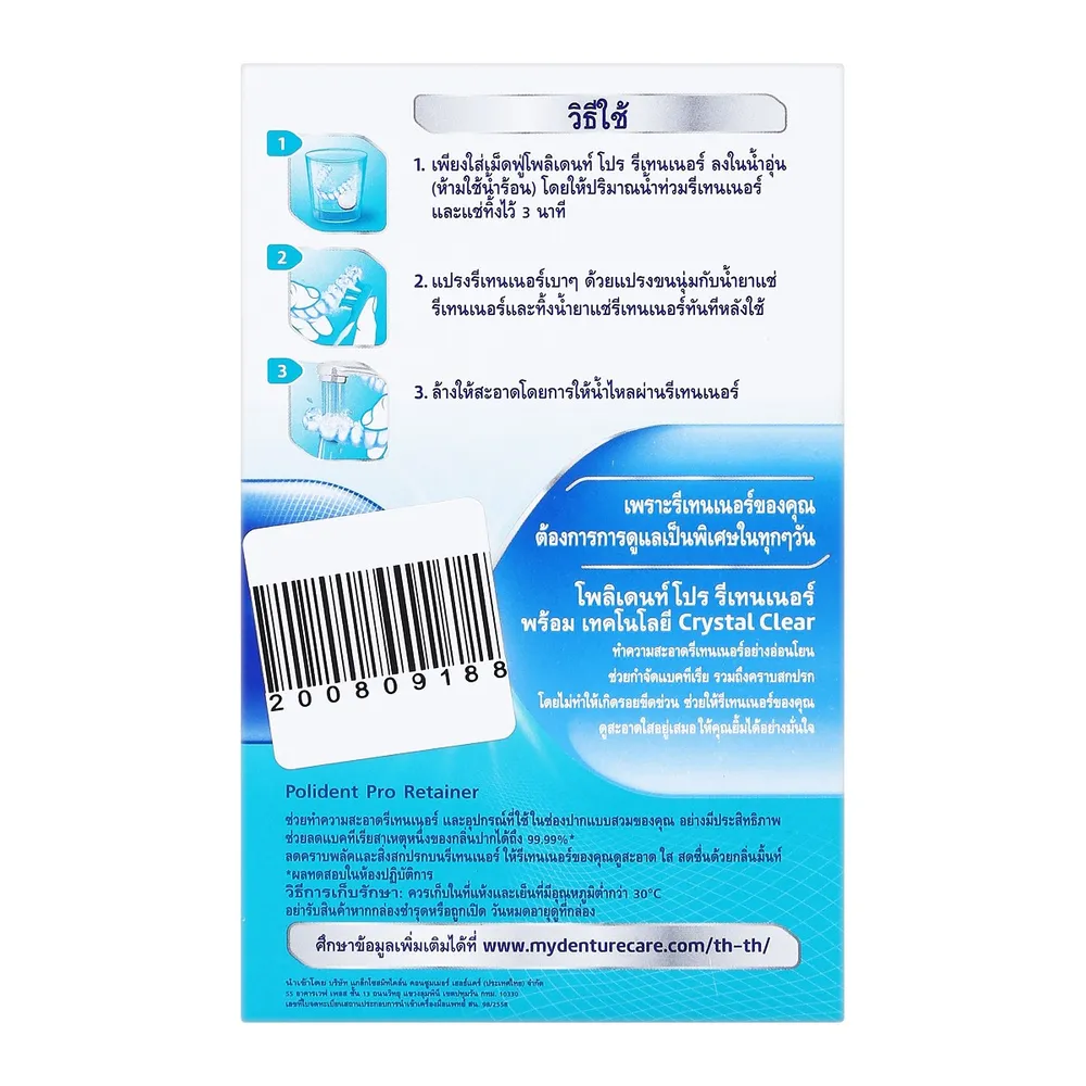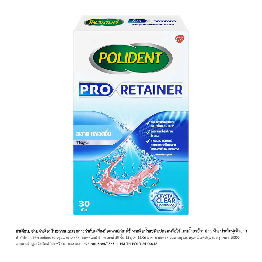 โพลิเดนท์ โปร รีเทนเนอร์ เม็ดฟู่ทำความสะอาดรีเทนเนอร์ 30 เม็ด