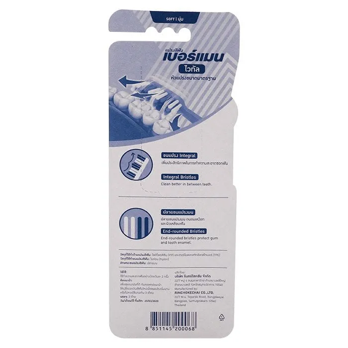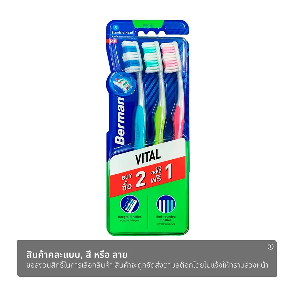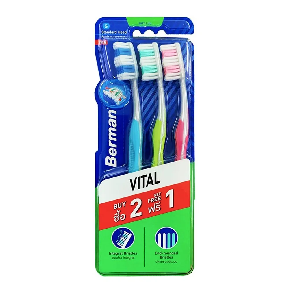 เบอร์แมน แปรงสีฟัน รุ่นไวทัล ซอฟท์ แพ็ค 2+1 คละสี