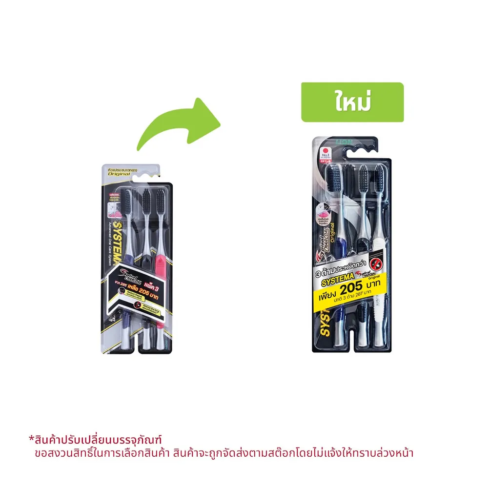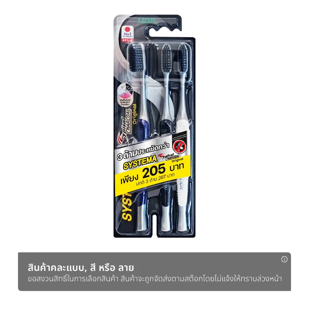 <p>ซิสเท็มมา แปรงสีฟัน สไปรัล ชาร์โคล แพ็ค 3<br />