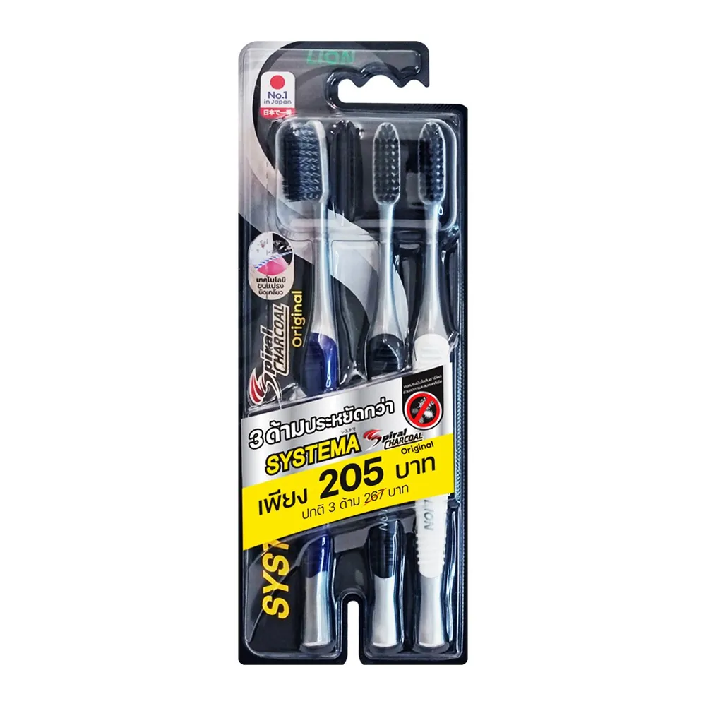 ซิสเท็มมา แปรงสีฟัน สไปรัล ชาร์โคล แพ็ค 3