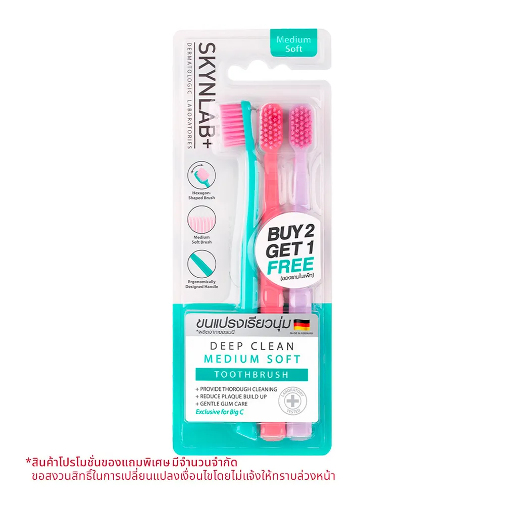 <p>สกินแล็บ แปรงสีฟัน ดีพคลีนมีเดียมซอฟท์ คอตตอนแคนดี้ แพ็ค 3 ชิ้น<br />