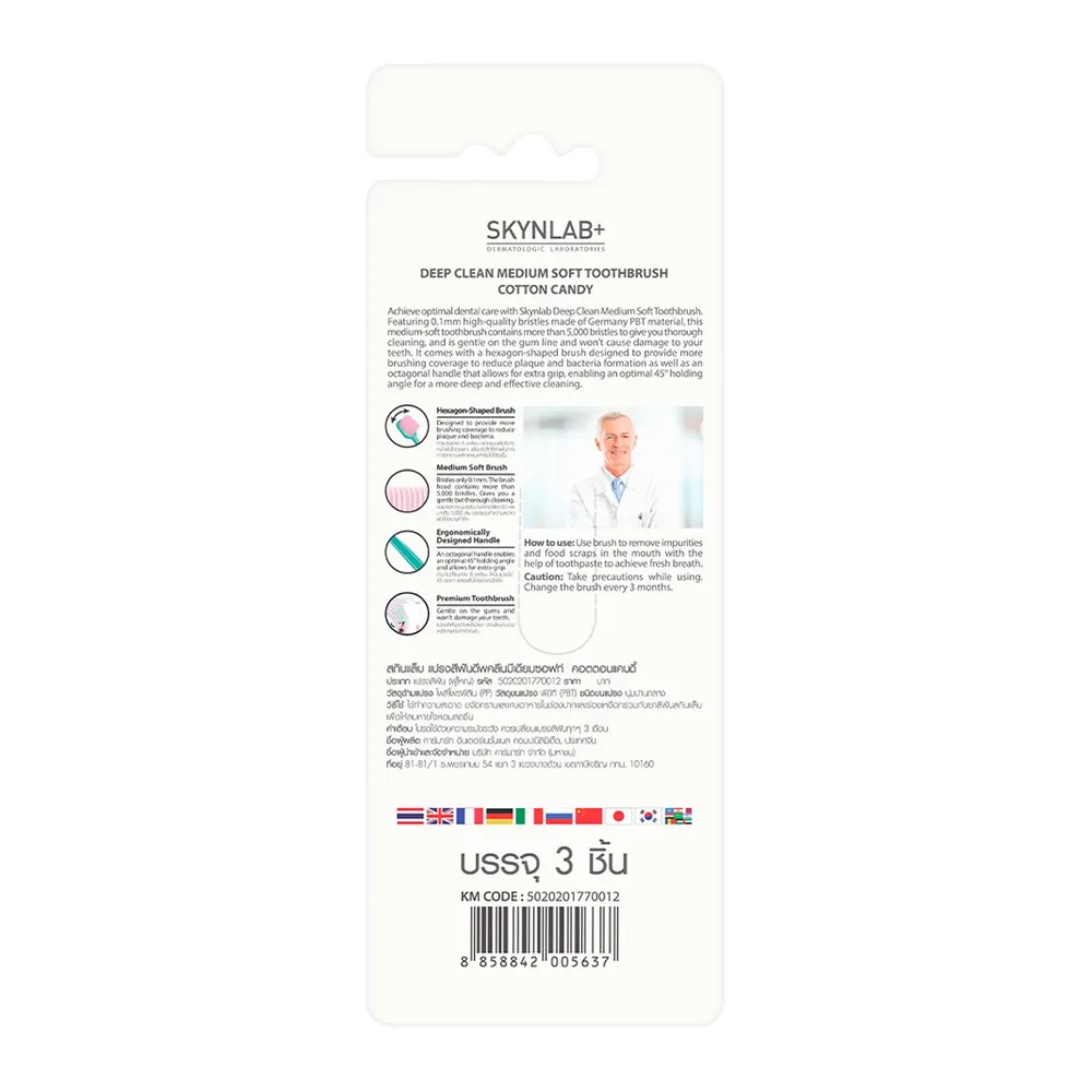 สกินแล็บ แปรงสีฟัน ดีพคลีนมีเดียมซอฟท์ คอตตอนแคนดี้ แพ็ค 3 ชิ้น