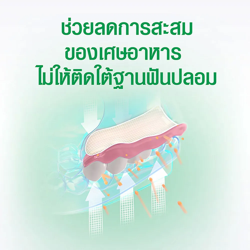 - ช่วยลดเศษอาหารติดใต้ฐานฟันปลอม 74%<br />