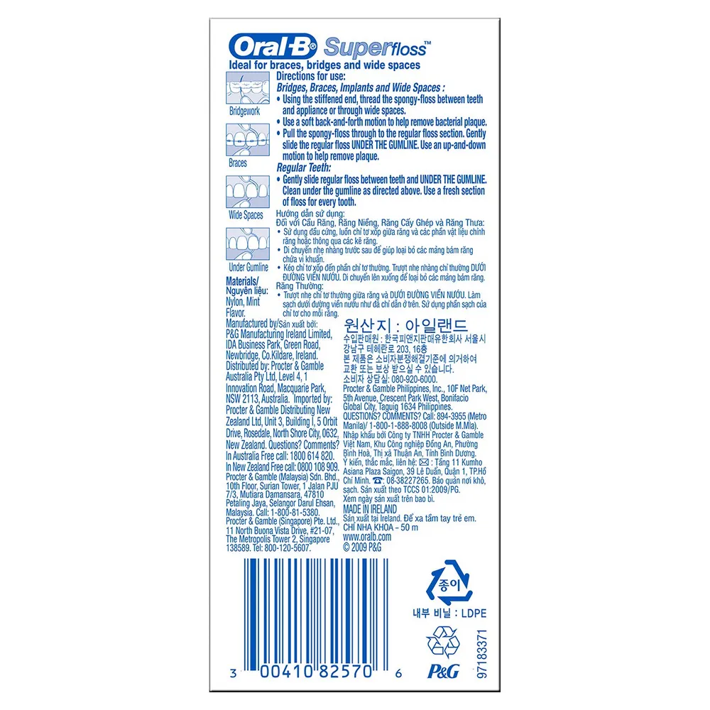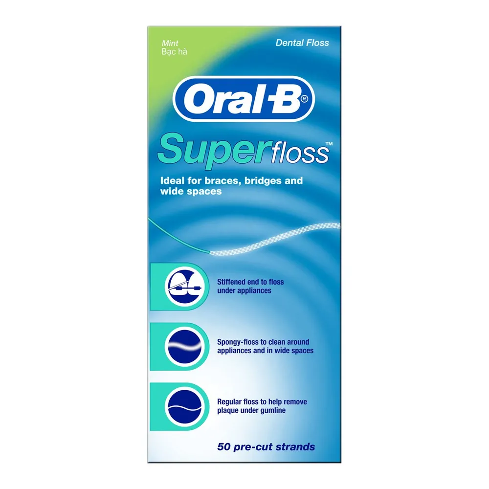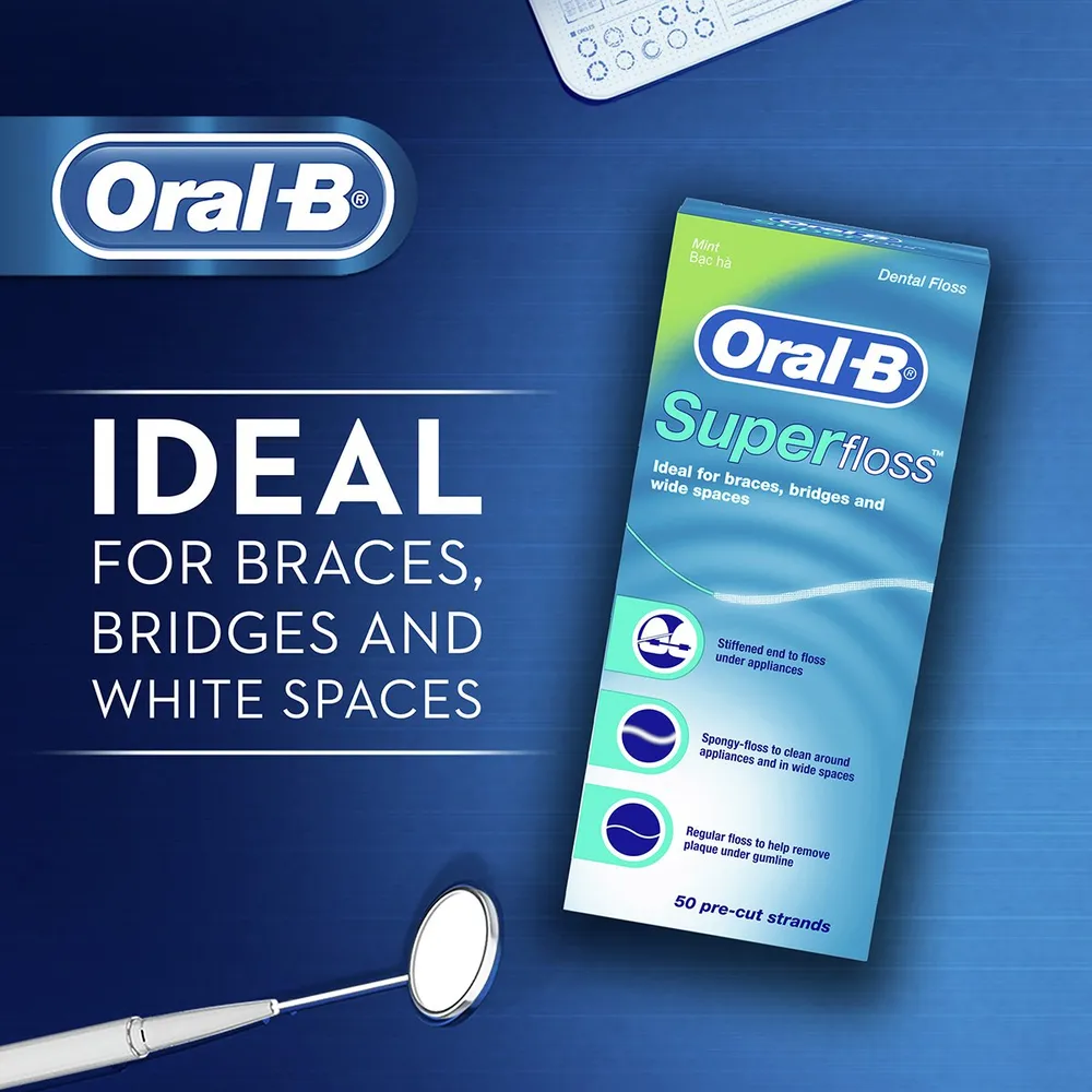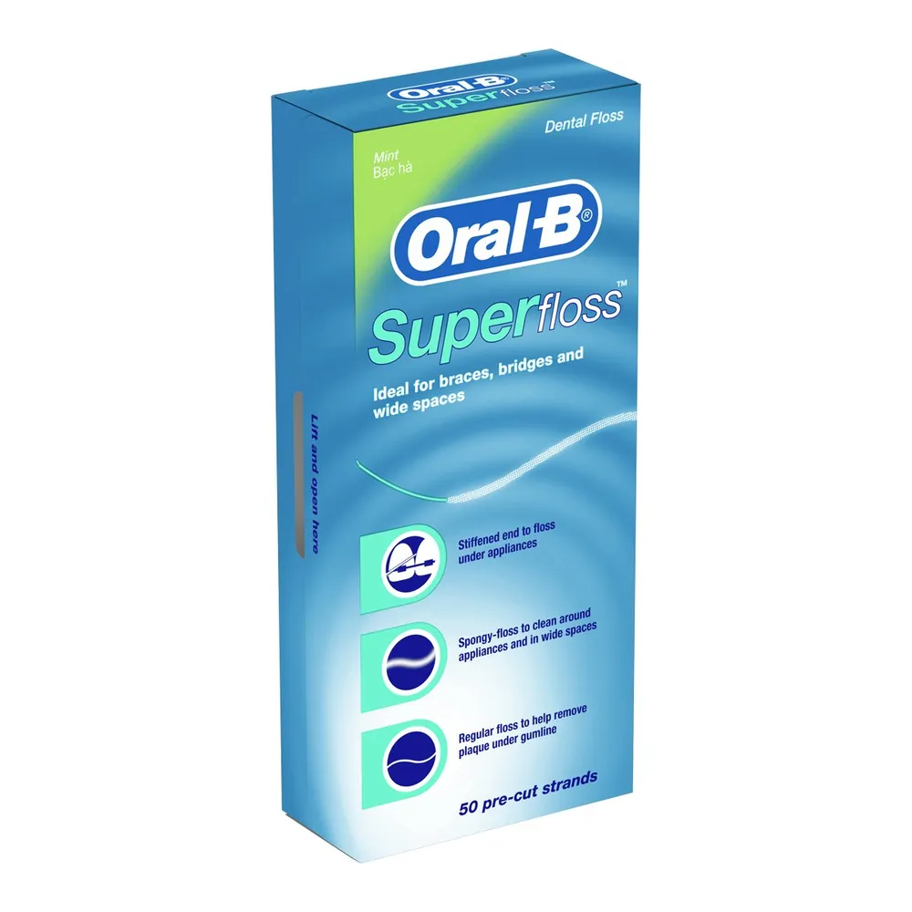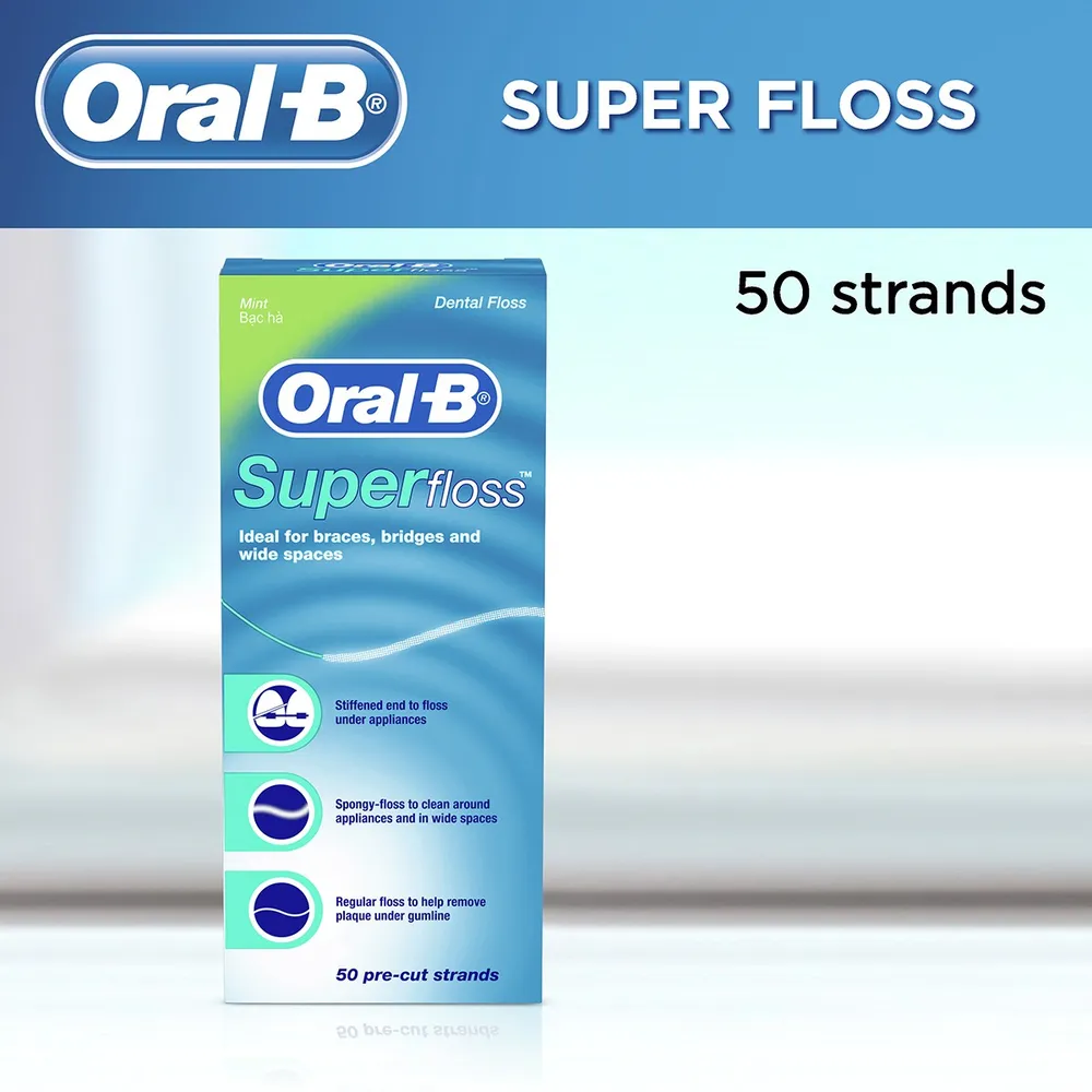 ออรัลบี ไหมขัดฟันซุปเปอร์ฟลอสมินท์ ที่ช่วยขจัดคราบพลัคในบริเวณที่แปรงไม่ถึง ด้วยขี้ผึ้งเคลือบบางๆ และเส้นใยทนทานต่อการเปื่อยยุ่ย ทำให้สามารถซอกซอนระหว่างซอกฟันและร่องเหงือกได้อย่างง่ายดาย อีกทั้งยังเหมาะสำหรับผู้ที่จัดฟันอีกด้วย<br />