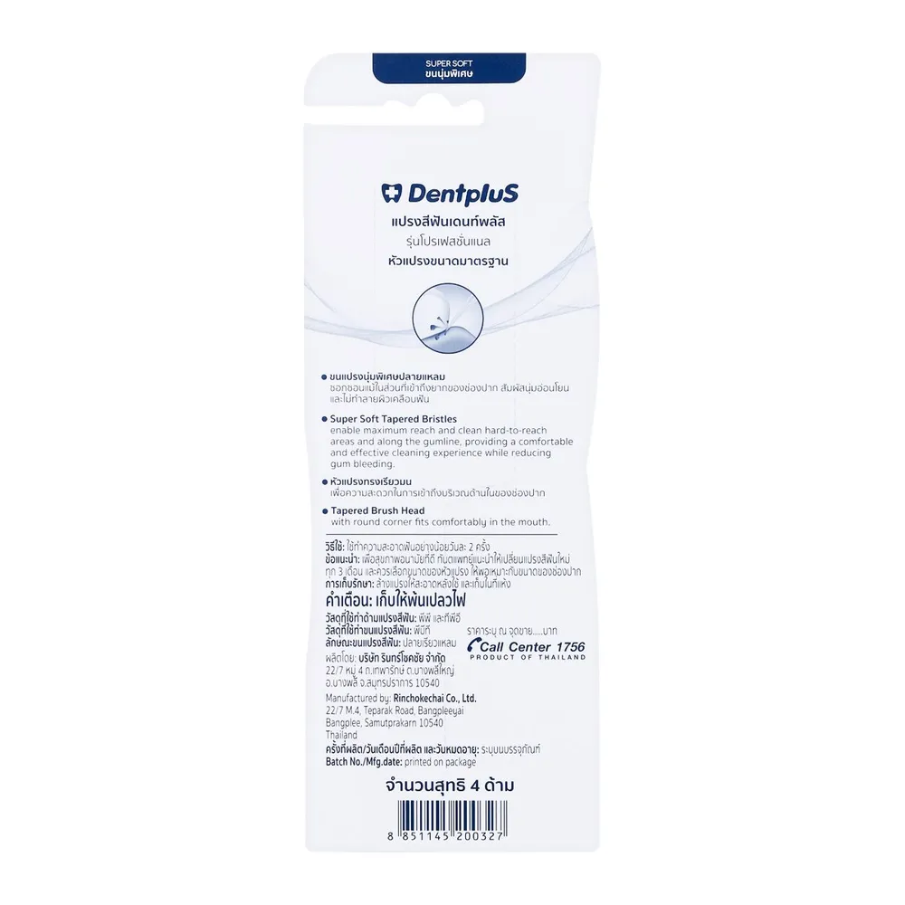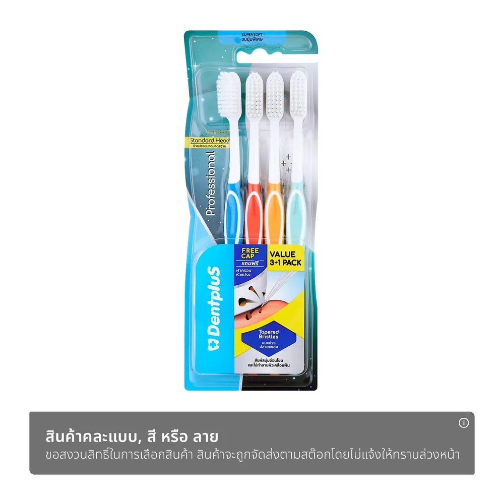 เดนท์พลัส แปรงสีฟัน รุ่นโปรเฟสชั่นแนล หัวแปรงมาตรฐาน ขนนุ่มพิเศษ แพ็ค 3+1 (สินค้าคละสี ไม่สามารถเลือกได้)