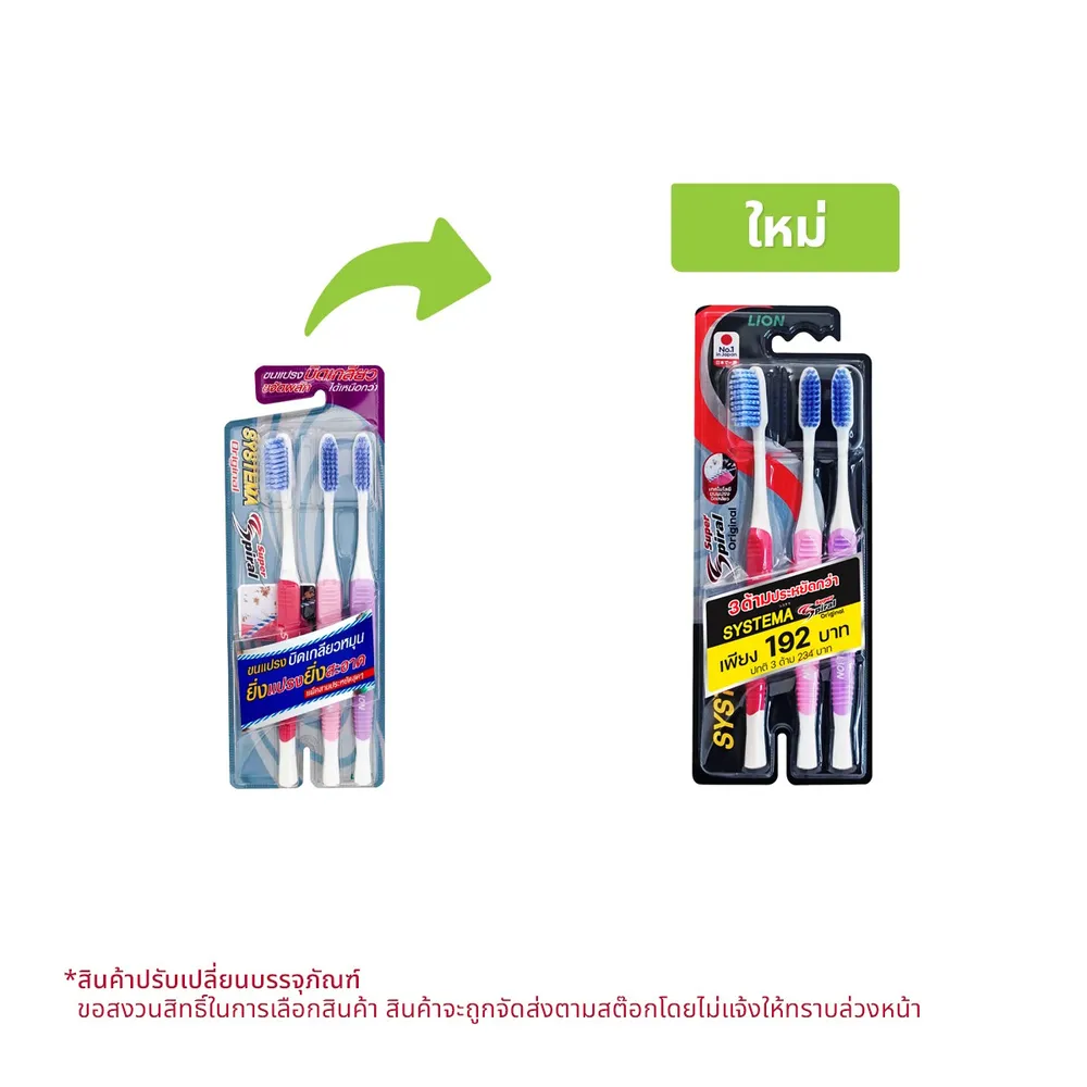 ซิสเท็มมา แปรงสีฟัน ซูปเปอร์สไปรัล การพัฒนาอีกขั้นของแปรงสีฟันซิสเท็มมา ขนแปรงบิดเกลียวหมุน เพิ่มประสิทธิภาพในการป้องกันและขจัดพลัคได้เหนือกว่า<br />
