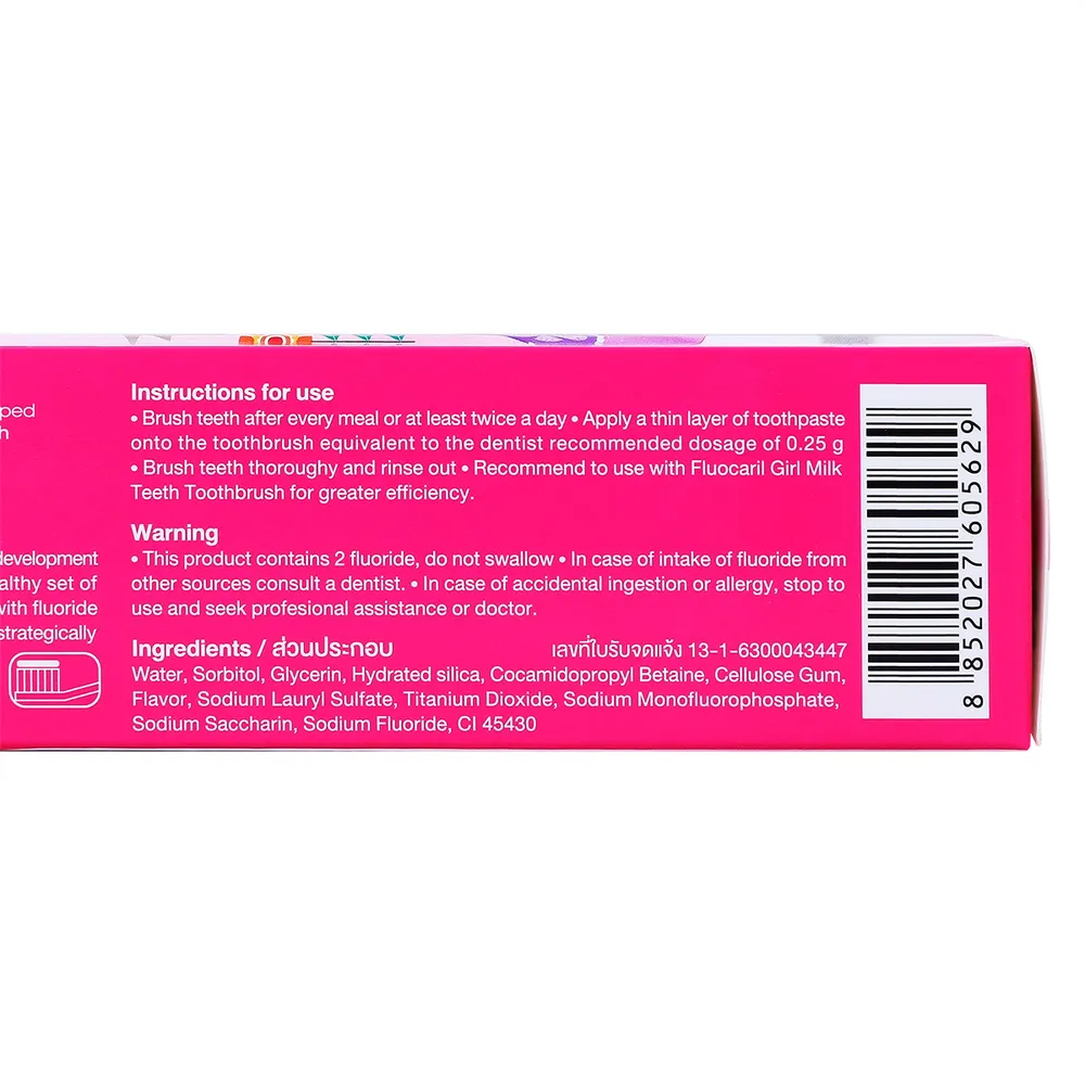 <p>ฟลูโอคารีล เกิร์ล มิ้ลค์ทีธ ยาสีฟันสำหรับเด็ก รสสตรอเบอร์รี่<br /> <br /> ให้เด็กๆ ได้มีฟันที่สะอาดด้วย ฟลูโอคารีล เกิร์ล มิ้ลค์ทีธ ยาสีฟันสำหรับเด็ก ที่ช่วยป้องกันฟันผุ ด้วยรสสตรอว์เบอร์รี่ ที่เด็กๆ ชื่นชอบ<br /> <br /> - ฟลูโอคารีล เกิร์ล มิ้ลค์ทีธ ยาสีฟันสำหรับเด็ก<br /> - ยาสีฟันคุณภาพเยี่ยม มีฟลูโอไรด์ 1,000 ppm ช่วยป้องกันฟันผุ<br /> - ออกแบบขนาดปากหลอดให้กำหนดปริมาณยาสีฟันให้พอเหมาะสำหรับเด็กๆ<br /> - ไม่ใส่สารกันบูด และน้ำตาล<br /> - ควรแปรงฟันหลังรับประทานอาหารทุกครั้ง หรืออย่างน้อยวันละ 2 ครั้ง เพื่อปากสะอาด สุขภาพฟันแข็งแรง<br /> - สำหรับเด็กๆ ที่เพิ่มเริ่มต้นการมีฟันแท้ซี่แรก<br /> <br /><span style="color: #ff0000;">*บริษัทฯ ขอสงวนสิทธิ์ในการปรับเปลี่ยนราคาจำหน่ายและโปรโมชั่น รวมถึงแพ็คเกจและปริมาณสินค้าจากผู้ผลิตได้ตามความเหมาะสม โดยไม่จำเป็นต้องแจ้งให้ทราบล่วงหน้า</span><br /><br /> *สีของสินค้าอาจมีความแตกต่าง ขึ้นอยู่กับการตั้งค่าของแต่ละหน้าจอ และภาพประกอบใช้เพื่อการโฆษณาเท่านั้น</p>