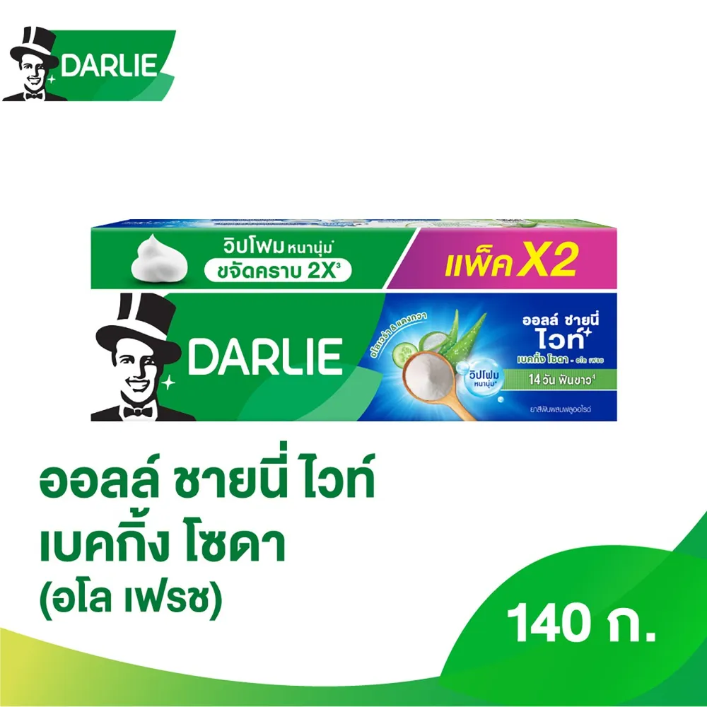 ดาร์ลี่ ยาสีฟัน ออลล์ ชายนี่ ไวท์ เบคกิ้ง โซดา - อโล เฟรช 140 ก. แพ็ค 2
