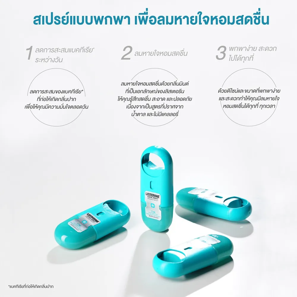 สะดวก ลมหายใจสดชื่นด้วย ลิสเตอรีน คูลมินต์ พ็อกเก็ตมิสท์ สเปรย์ระงับกลิ่นปาก ผลิตภัณฑ์สเปรย์คุณภาพจากแบรนด์ ลิสเตอรีน ที่ช่วยลดการสะสมของแบคทีเรียในช่องปาก ทำให้รู้สึกสะอาด สดชื่น สร้างความมั่นใจในระหว่างวัน ขนาดเล็ก พกพาสะดวก<br />