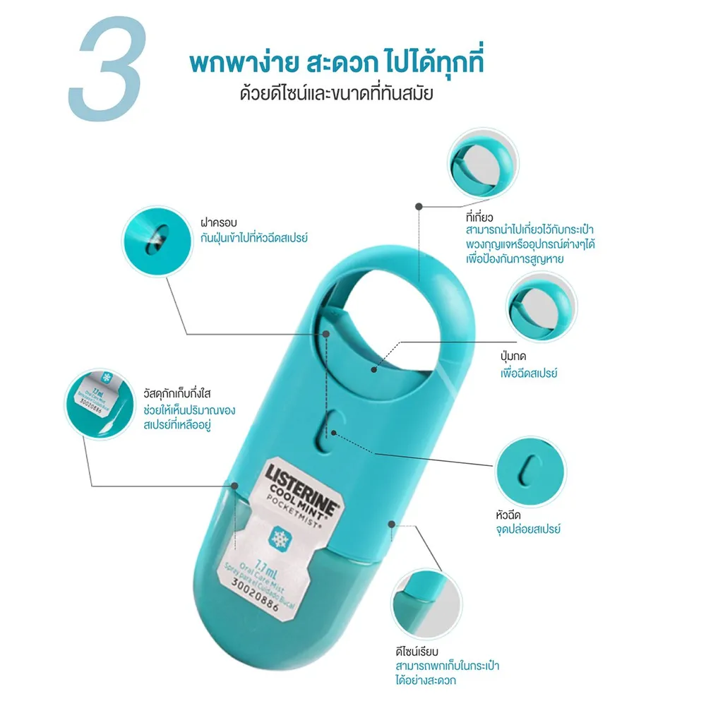 - สเปรย์ระงับกลิ่นปาก ขนาดเล็ก ที่สามารถพกพาได้สะดวกสบาย<br />