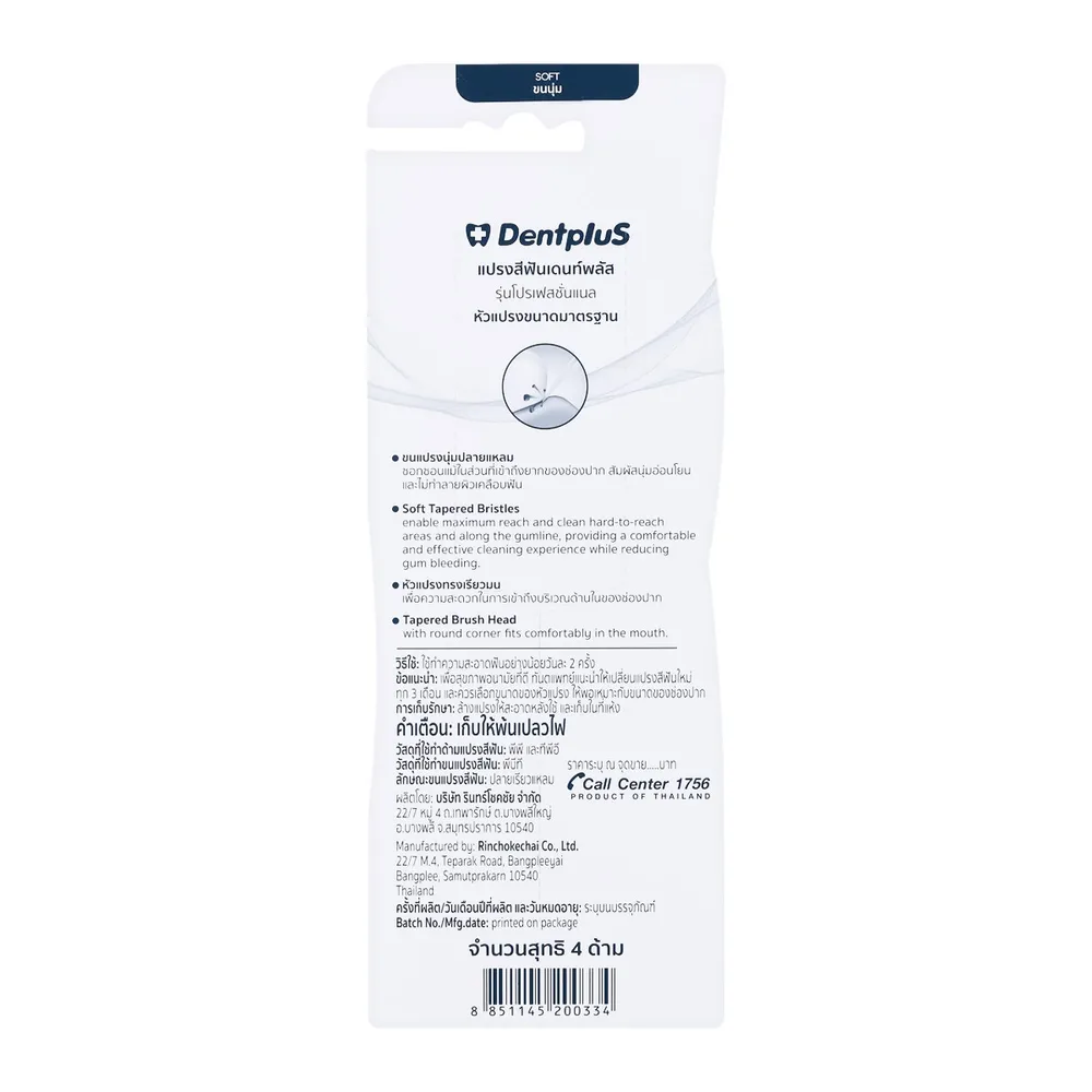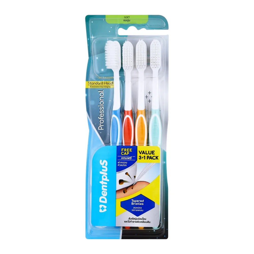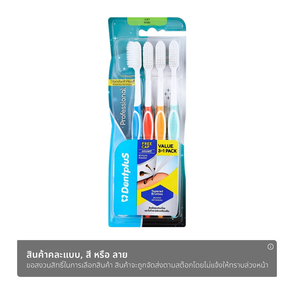 เดนท์พลัส แปรงสีฟัน รุ่นโปรเฟสชั่นแนล หัวแปรงมาตรฐาน ขนนุ่ม แพ็ค 3+1 คละสี