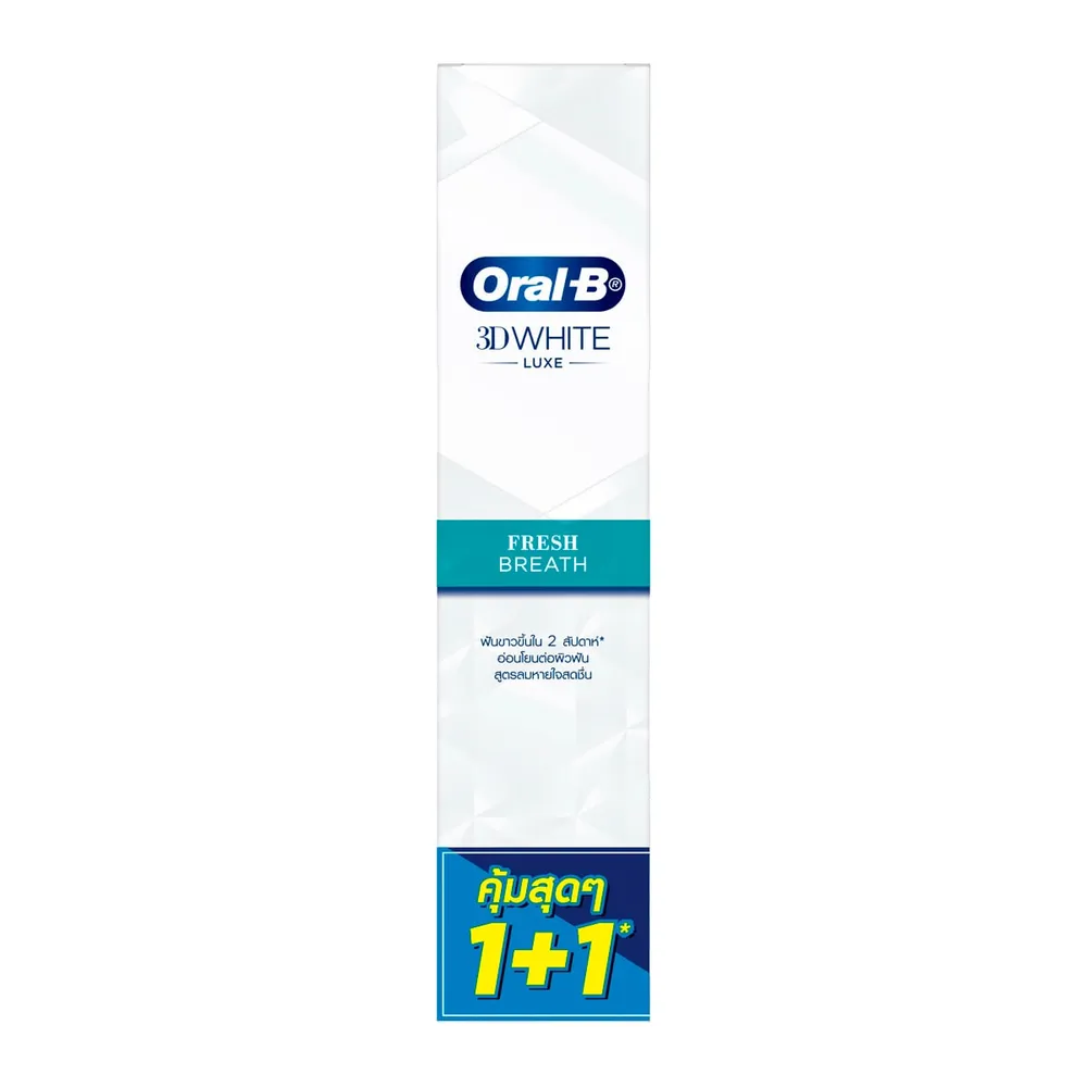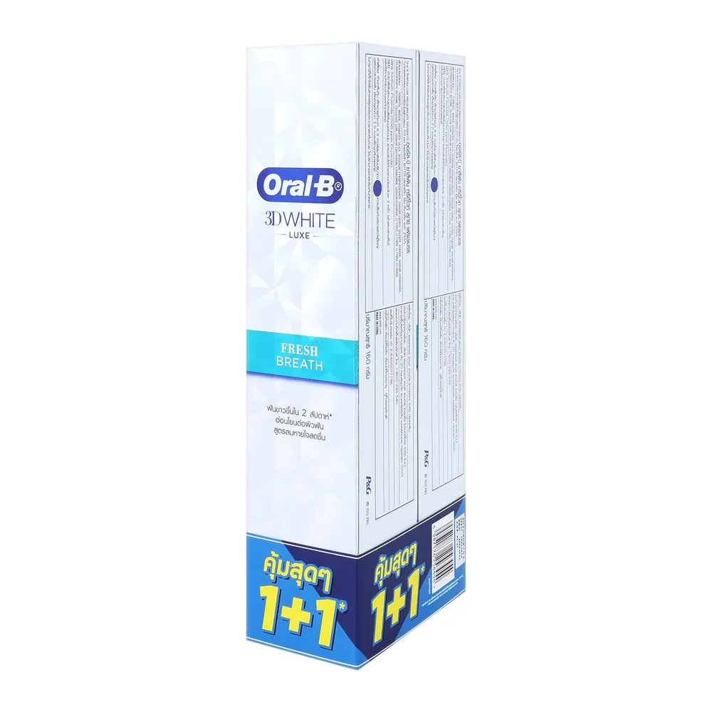 ออรัล-บี ยาสีฟัน ทรีดีไวท์ ลุกซ์ เฟรช เบรธ สูตรลมหายใจหอมสดชื่น 160 ก. แพ็คคู่