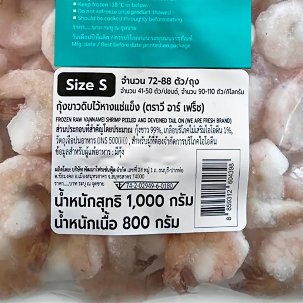 วี อาร์ เฟรช กุ้งขาวไว้หางแช่แข็ง ขนาด 72-88 ตัว 800 ก.