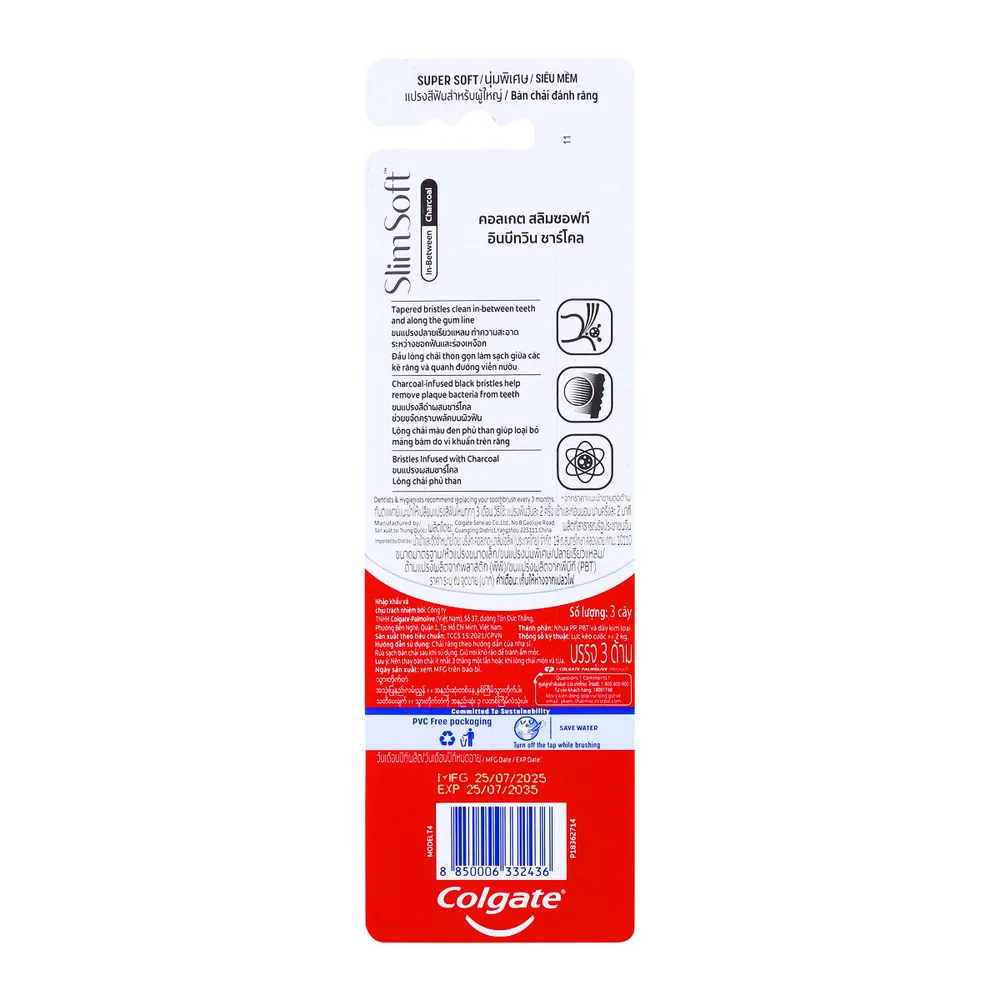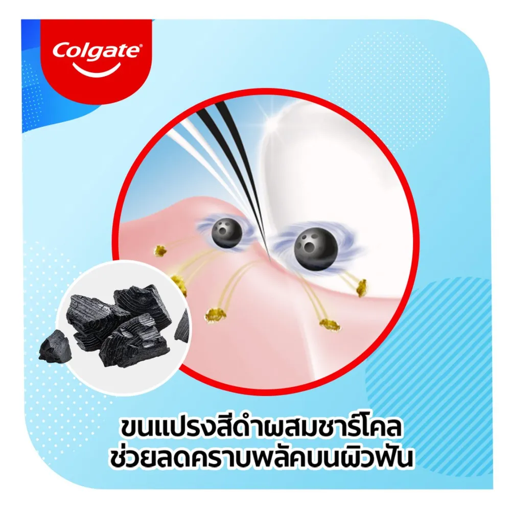 คอลเกต แปรงสีฟัน สลิมซอฟท์ อินบีทวีน คลีน อัลตร้าซอฟท์ ขนแปรงนุ่มพิเศษสีดำผสมชาร์โคล ซอกซอนช่วยขจัดคราบสะสมในซอกฟันและร่องเหงือกได้อย่างมีประสิทธิภาพ<br />