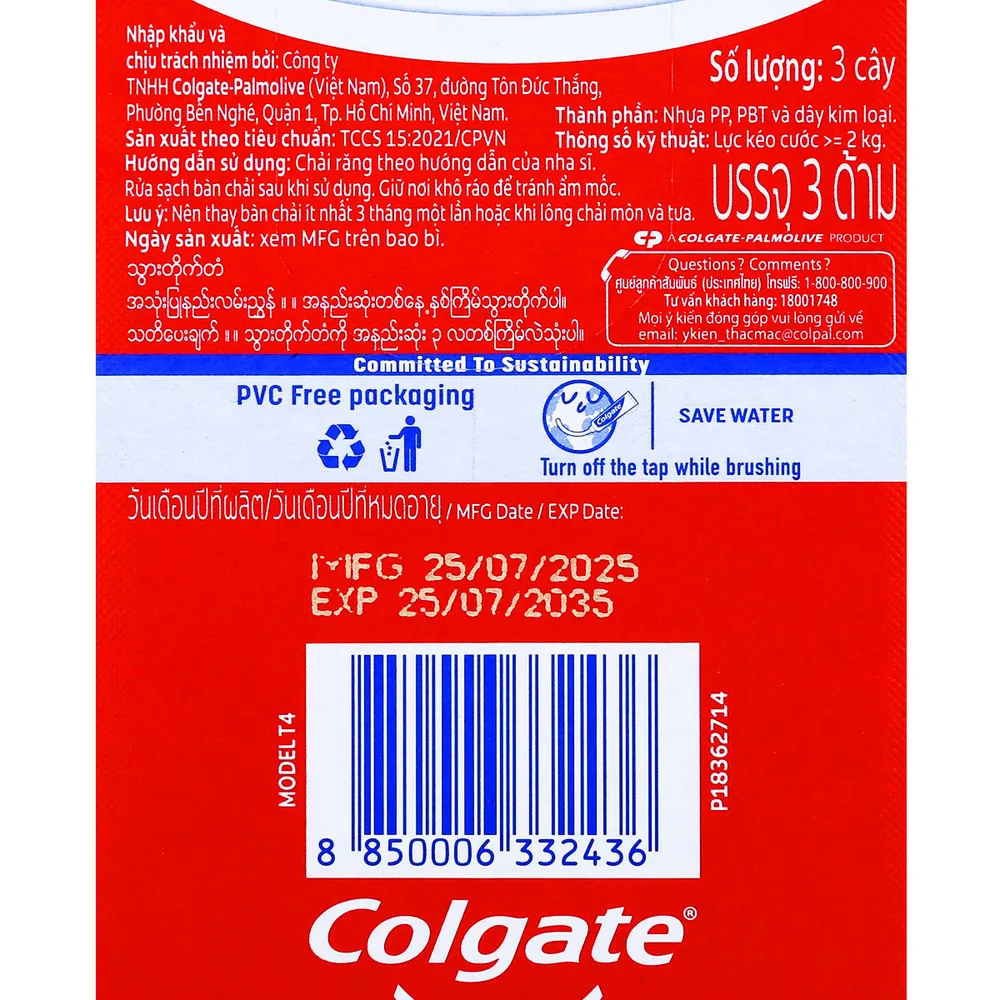 คอลเกต แปรงสีฟัน สลิมซอฟท์ อินบีทวีน คลีน อัลตร้าซอฟท์ แพ็ค 2+1 คละสี