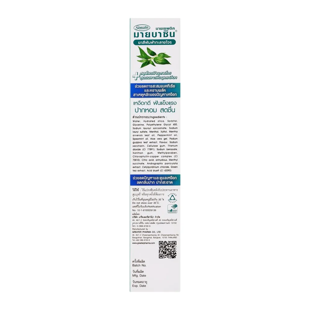 - มายเซพติค มายบาซิน ยาสีฟัน สูตรฟ้าทะลายโจร<br />