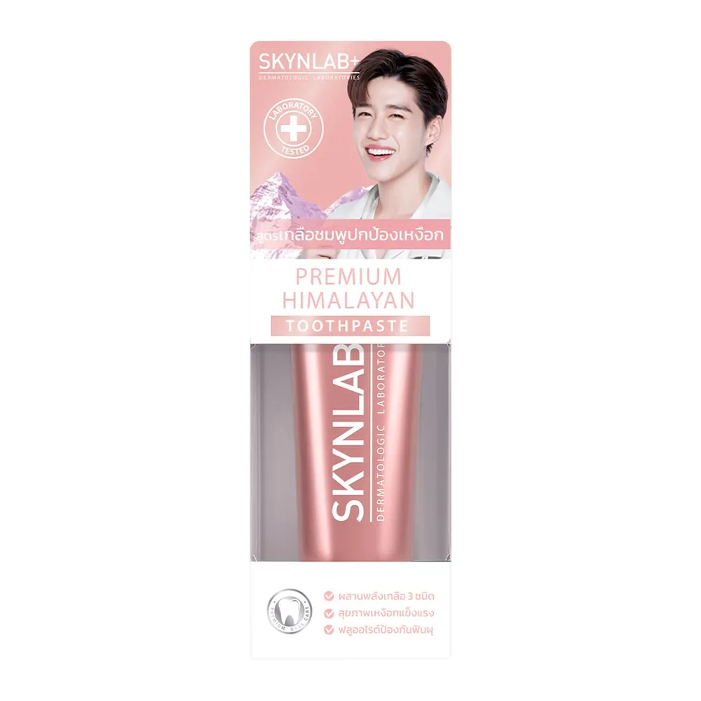สกินแล็บ ยาสีฟันพรีเมี่ยมหิมาลายัน ช่วยดูแลสุขภาพเหงือกอย่างอ่อนโยน ปลอดภัย ไม่ระคายเคืองต่อช่องปาก ผสานพลังจากเกลือธรรมชาติ 3 ชนิด คือ เกลือหิมาลายันสีชมพู เกลือจากทะเลเดดซี และเกลือแร่ธรรมชาติจากน้ำทะเลภูเขาไฟเกาะเชจู อุดมด้วยแร่ธาตุมากกว่า 84 ชนิด เติมความชุ่มชื้นภายในช่องปากเพื่อให้เหงือกและฟันแข็งแรง ด้วยสารสกัดธรรมชาติ 4 ชนิด (Botanical Extracts) จากสารสกัดดอกคาโมมายล์ น้ำมันกานพลู น้ำมันดอกเสจ และน้ำมันใบไทม์ ลดสาเหตุการอักเสบของเหงือก ผสานสารสกัดจากดอกแซฟฟรอน ลดการสะสมคราบจุลินทรีย์บนผิวฟันและช่วยดูแลเหงือกให้แข็งแรง เอนไซม์โบรมิเลนจากสับปะรด ขจัดคราบพลัค ซึ่งเป็นสาเหตุของกลิ่นปาก<br />