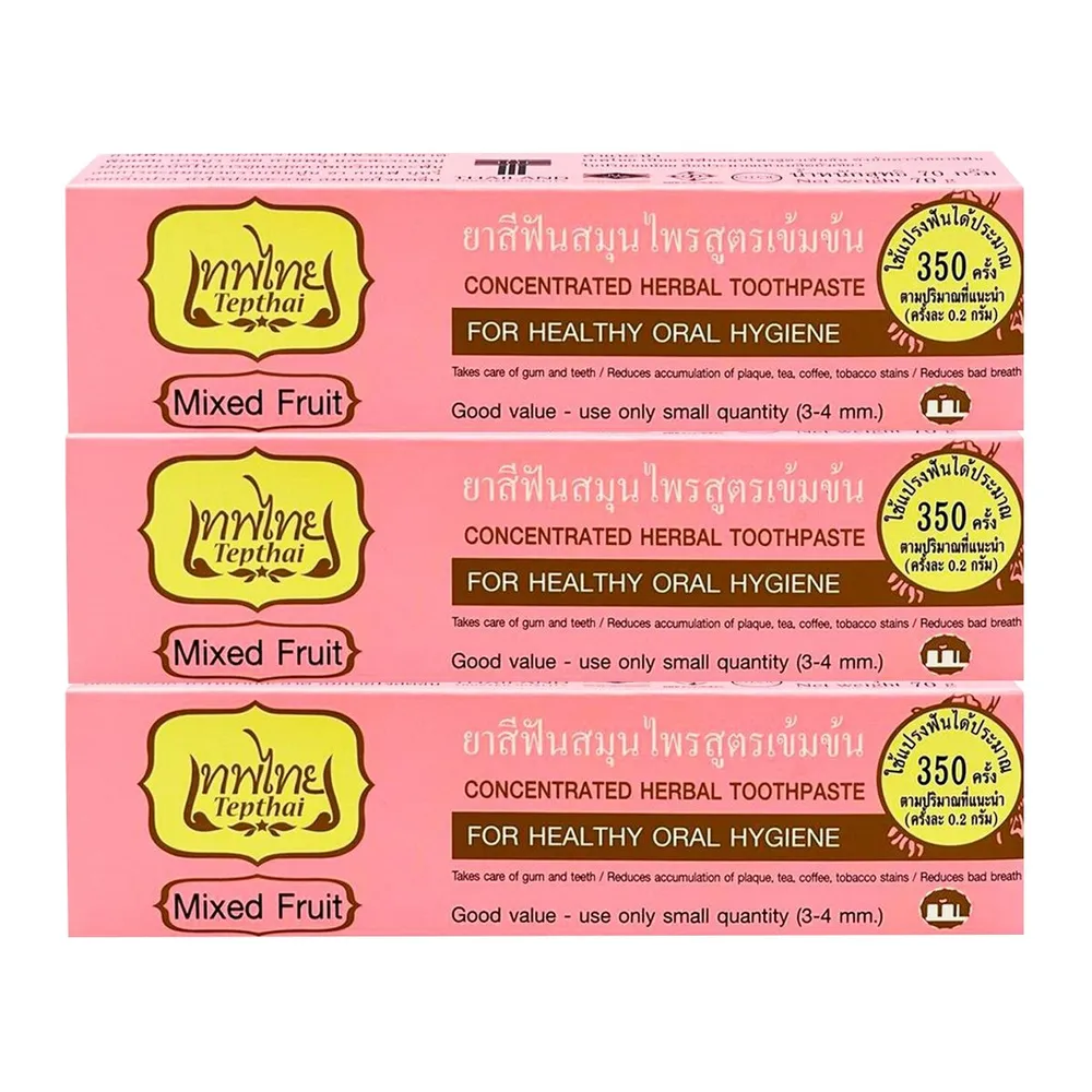 เทพไทย ยาสีฟันสมุนไพรสูตรเข้มข้น รสมิกซ์ฟรุ๊ต 70 ก. แพ็ค 3
