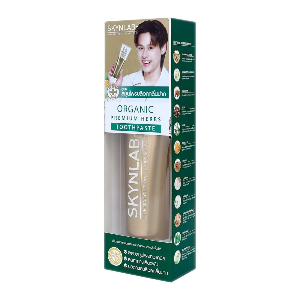 สกินแล็บ ยาสีฟันออแกนิคพรีเมี่ยมเฮิร์บ ยาสีฟันออแกนิคสูตรสมุนไพรธรรมชาติ คุณภาพระดับพรีเมี่ยม คัดสรรสมุนไพรที่ดูแลช่องปากหลากหลายชนิด<br />