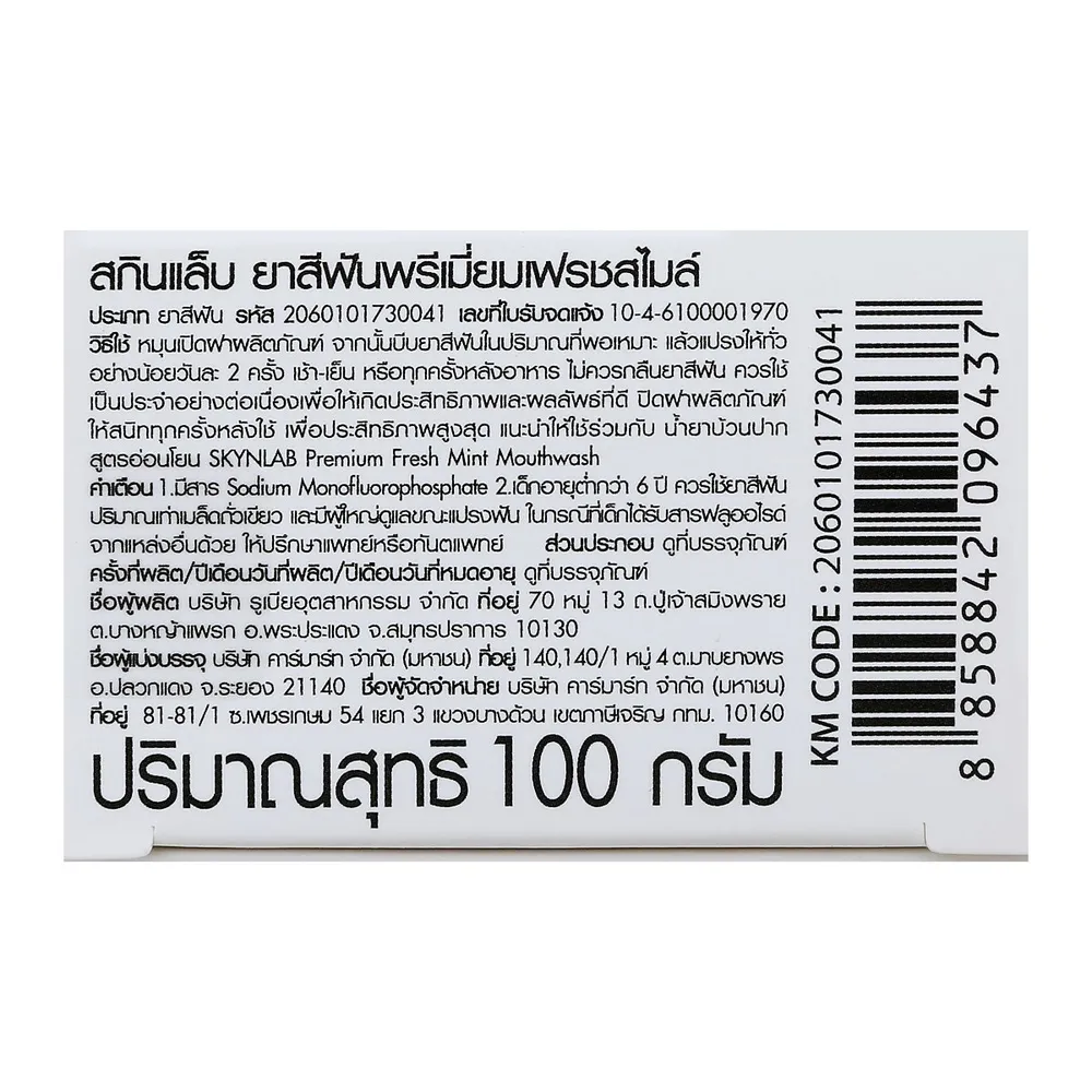 สกินแล็บ พลัส พรีเมียม เฟรช สไมล์ ยาสีฟัน 100 ก.