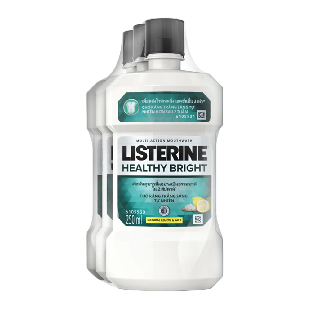 ลิสเตอรีน เฮลตี้ ไบรท์ น้ำยาบ้วนปาก สูตรมะนาวและเกลือ 250 มล. แพ็ค 3