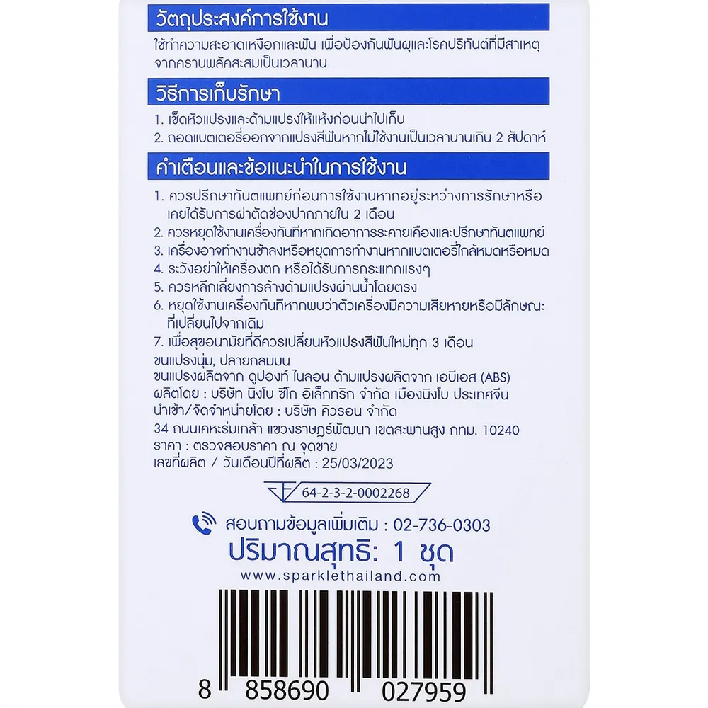 สปาร์คเคิล โซนิค แปรงสีฟันไฟฟ้า เดลี่ไวท์ พลัส