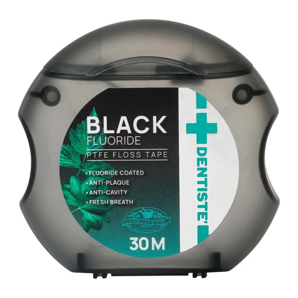 เดนทิสเต้ ไหมขัดฟันสีดำ เส้นไหมขัดฟันแบบเทปขนาดกว้าง มีความนุ่ม ลื่น ทนทาน เคลือบด้วยฟลูออไรด์ เส้นไหมอ่อนโยนต่อเหงือก ช่วยทำความสะอาดซอกฟันสำหรับพื้นที่ ที่การแปรงฟันไม่สามารถเข้าถึง<br />
