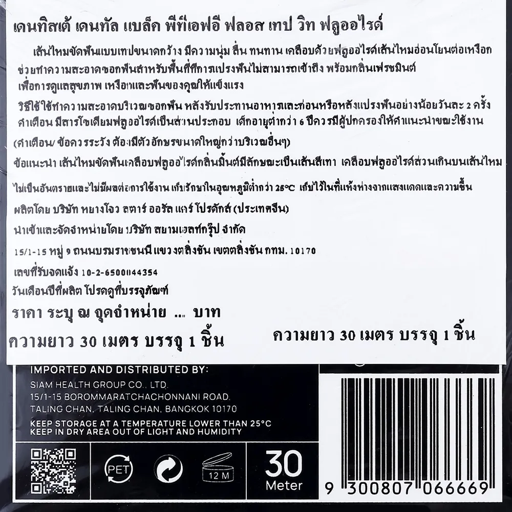 <p>เดนทิสเต้ เดนทัลแบล็ค พีทีเอฟอี ฟลอส เทป วิท ฟลูออไรด์ 30 ม.<br />