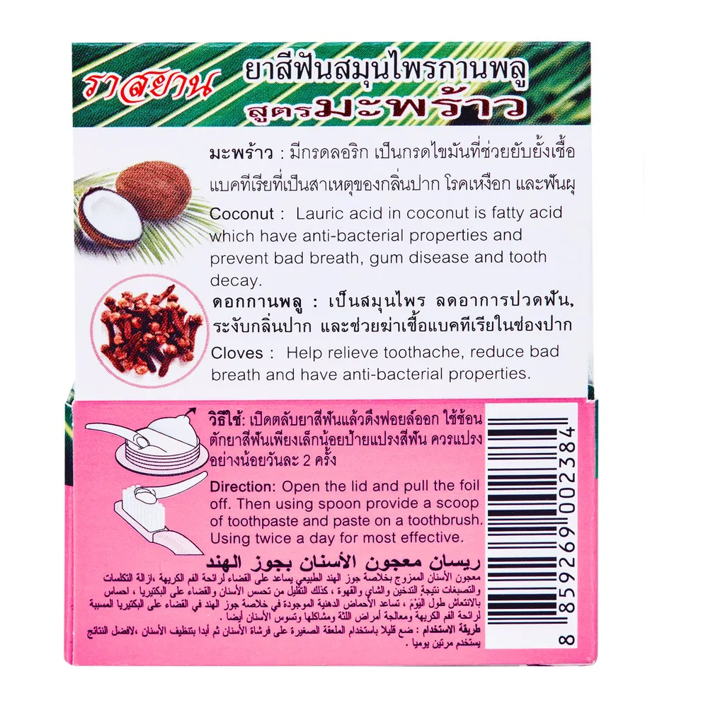 - ราสยาน ยาสีฟันสมุนไพรกานพลู สูตรมะพร้าว<br />