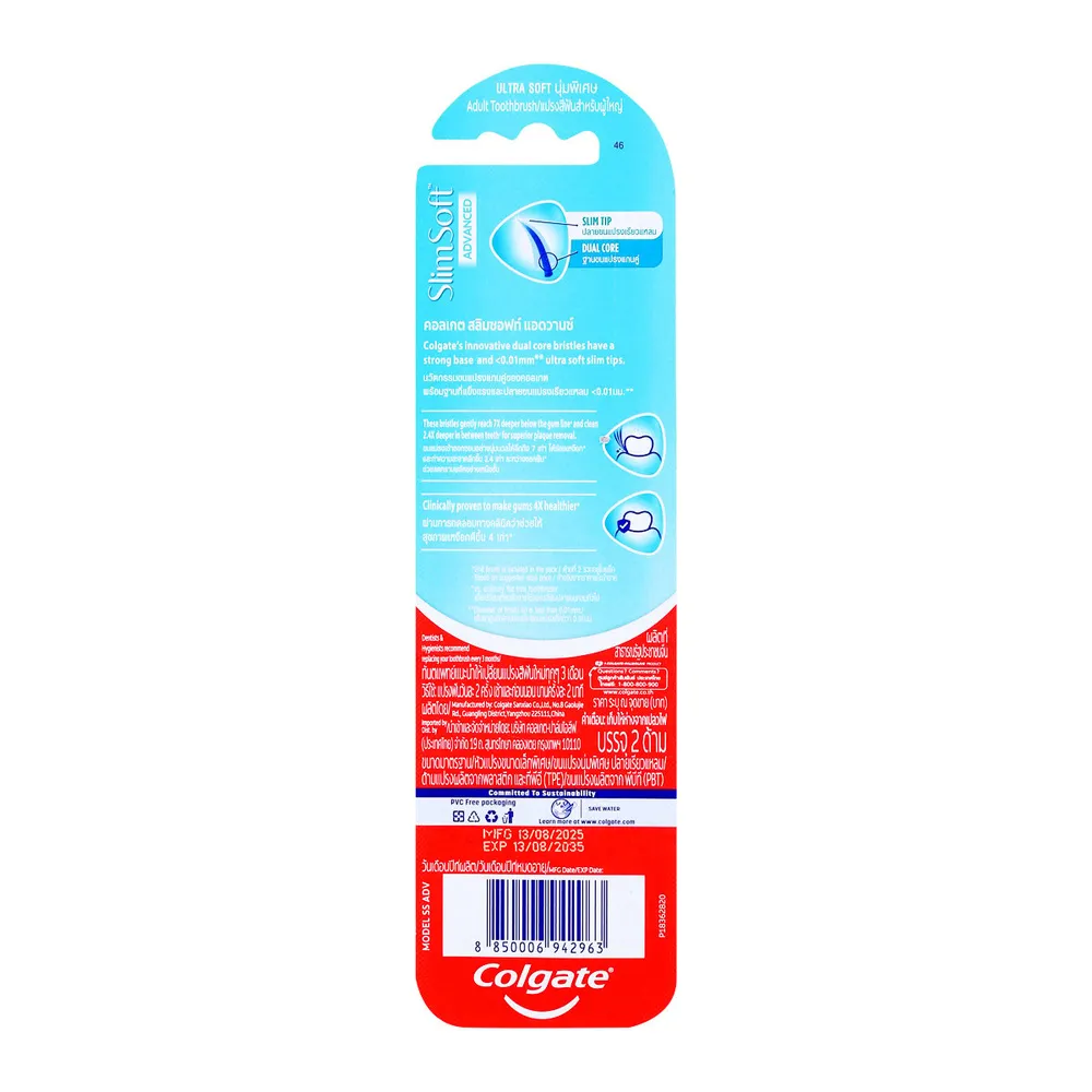 คอลเกต แปรงสีฟัน สลิมซอฟท์ แอดวานซ์ แพ็ค 2