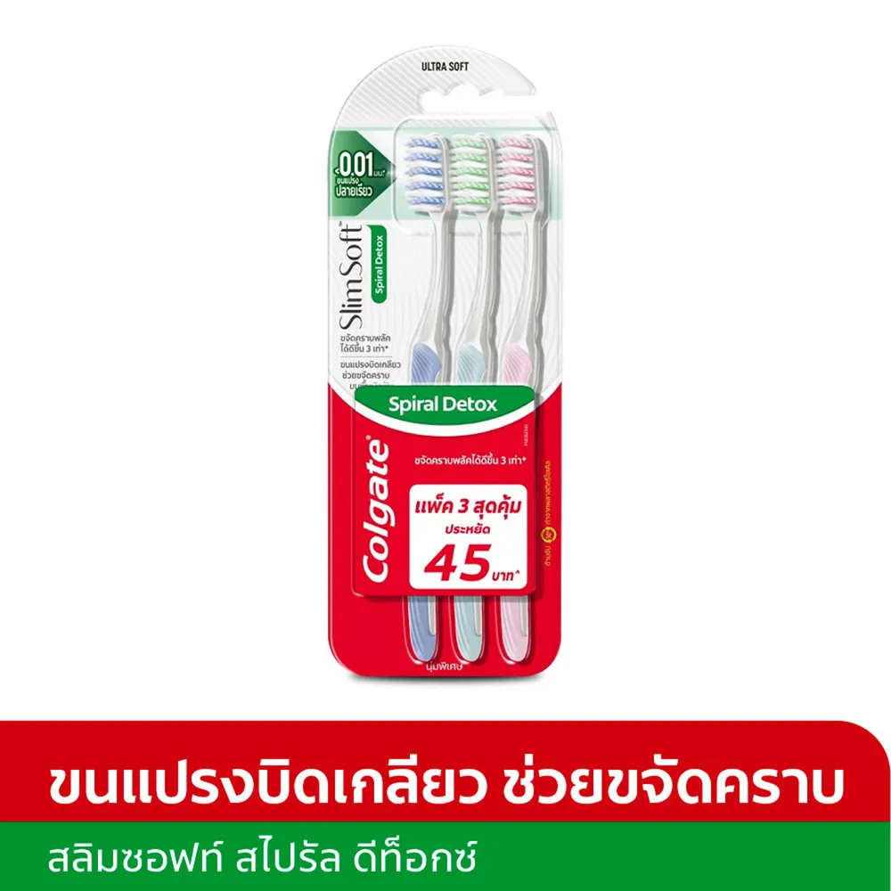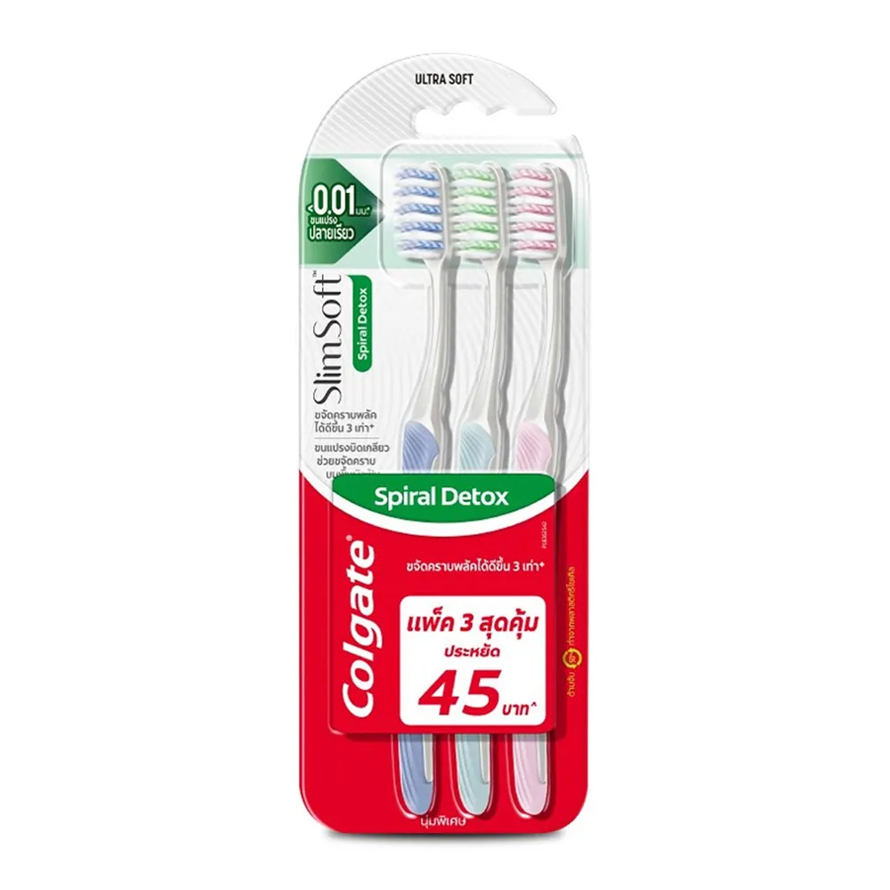 คอลเกต สลิมซอฟท์ สไปรัล ดีท็อกซ์ แปรงสีฟัน รุ่นนุ่มพิเศษ แพ็ค 3 คละสีภายในแพ็ค