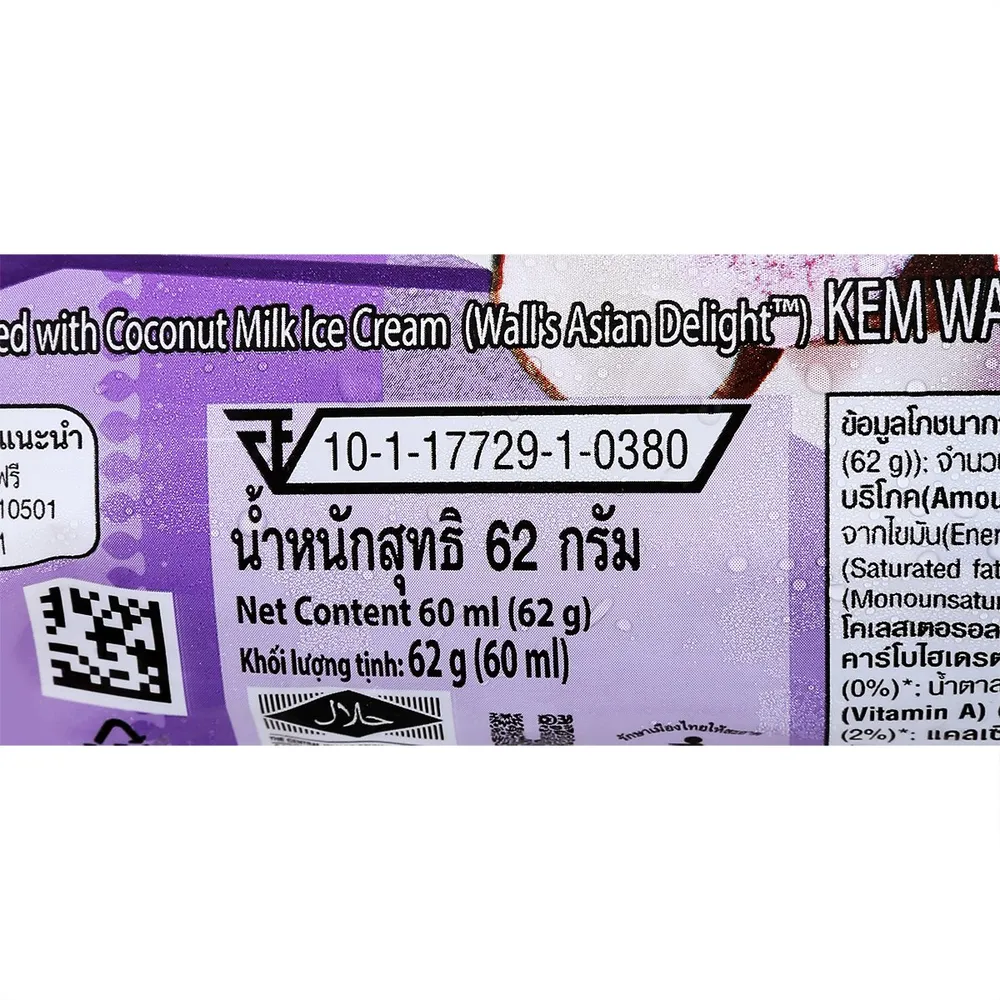 วอลล์ ไอศกรีม เอเชี่ยน ดีไลท์ รสกระทิผสมเผือก 60 ก.