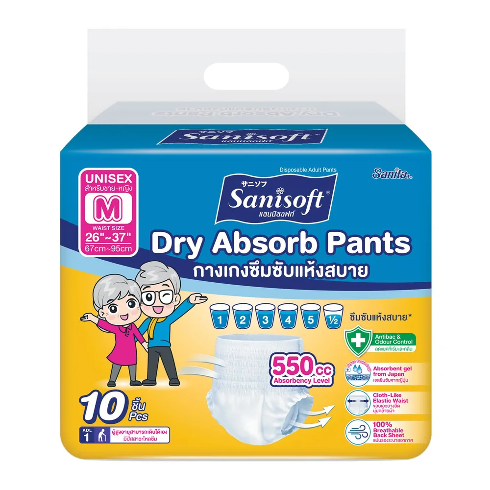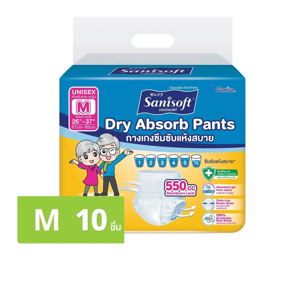 แซนนิซอฟท์ กางเกงซึมซับแห้งสบาย สำหรับชาย-หญิง ไซส์ M 26-37 นิ้ว แพ็ค 10