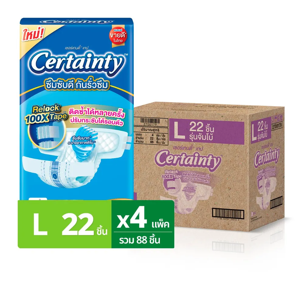 เซอร์เทนตี้ เทป ผ้าอ้อมผู้ใหญ่แบบเทป รุ่นจัมโบ้ ขนาด L 22 ชิ้น x 4 แพ็ค