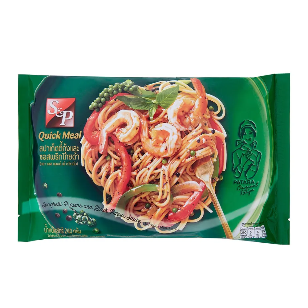 <p>เอสแอนด์พี ควิกมิล สปาเก็ตตี้กุ้งและซอสพริกไทยดำ 240 ก.<br />