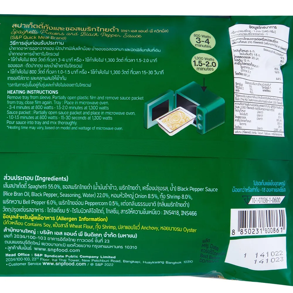 เอสแอนด์พี ควิกมิล สปาเก็ตตี้กุ้งและซอสพริกไทยดำ 240 ก.