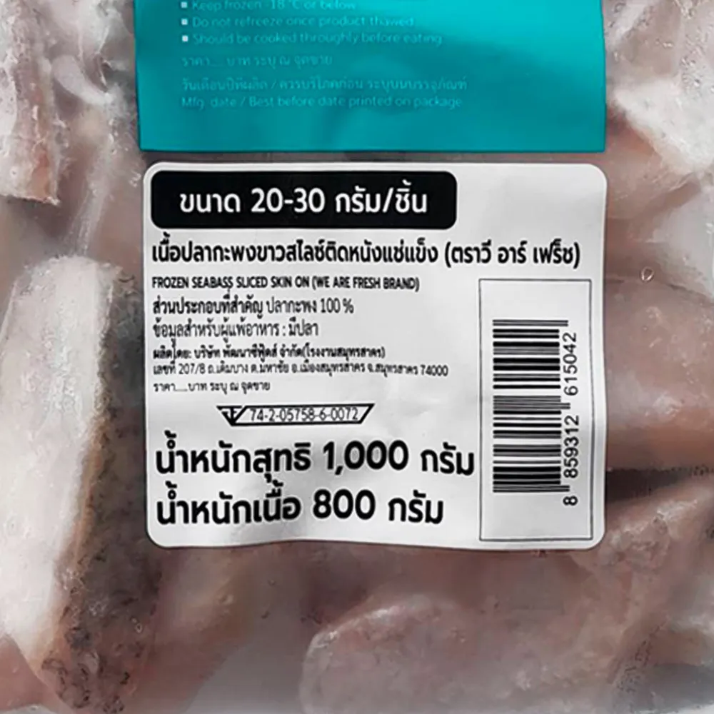 วี อาร์ เฟรช เนื้อปลากะพงสไลด์ ( ขนาด 20-30ก./ชิ้น) 800 ก.