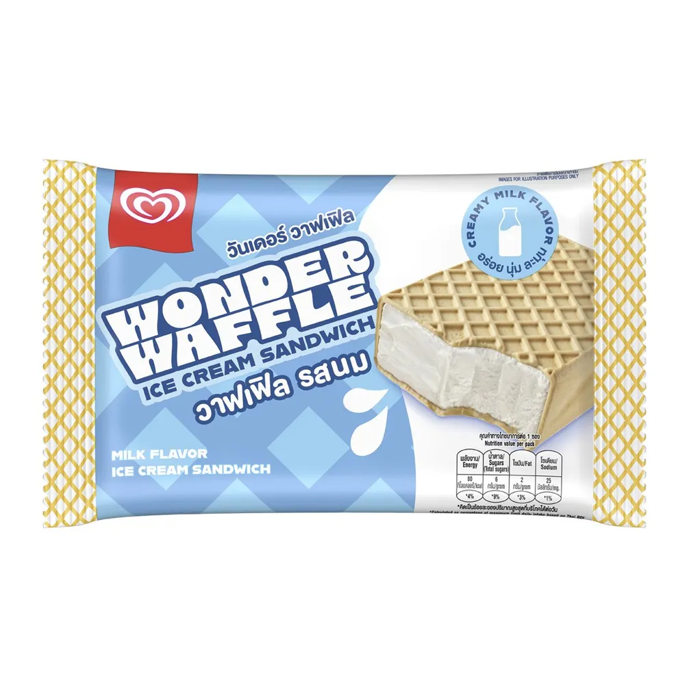 - เวเฟอร์แป้งนุ่ม สอดไส้ไอศกรีมรสนม<br />