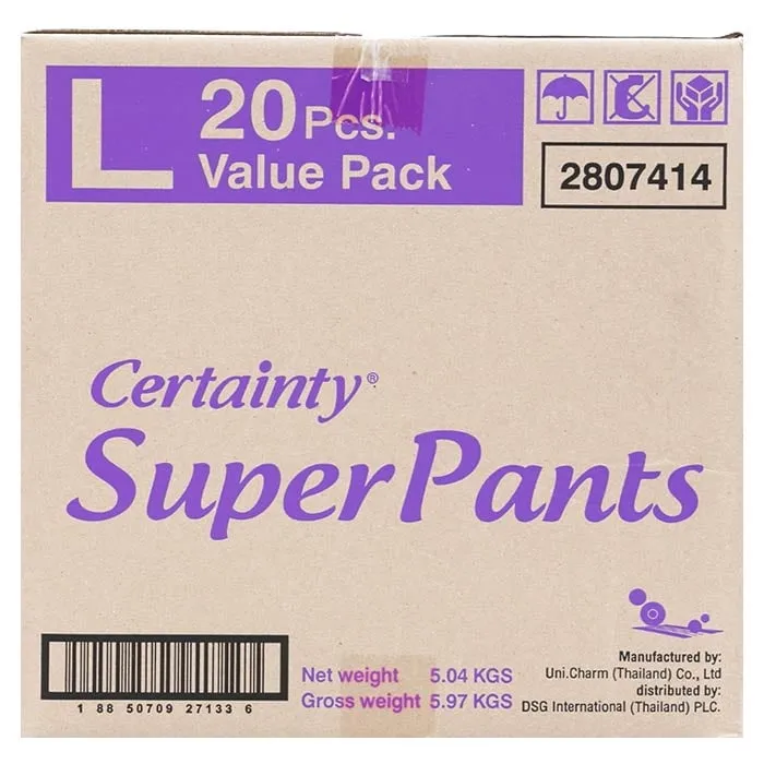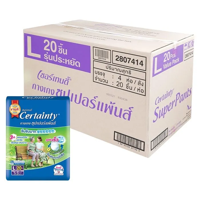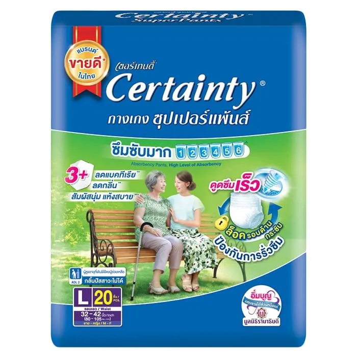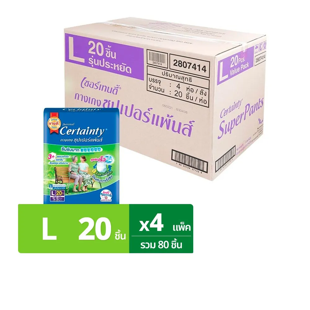 เซอร์เทนตี้ ซุปเปอร์แพ้นส์ กางเกงผ้าอ้อมผู้ใหญ่ ซึมซับมาก ขนาด L 20 ชิ้น x 4 แพ็ค